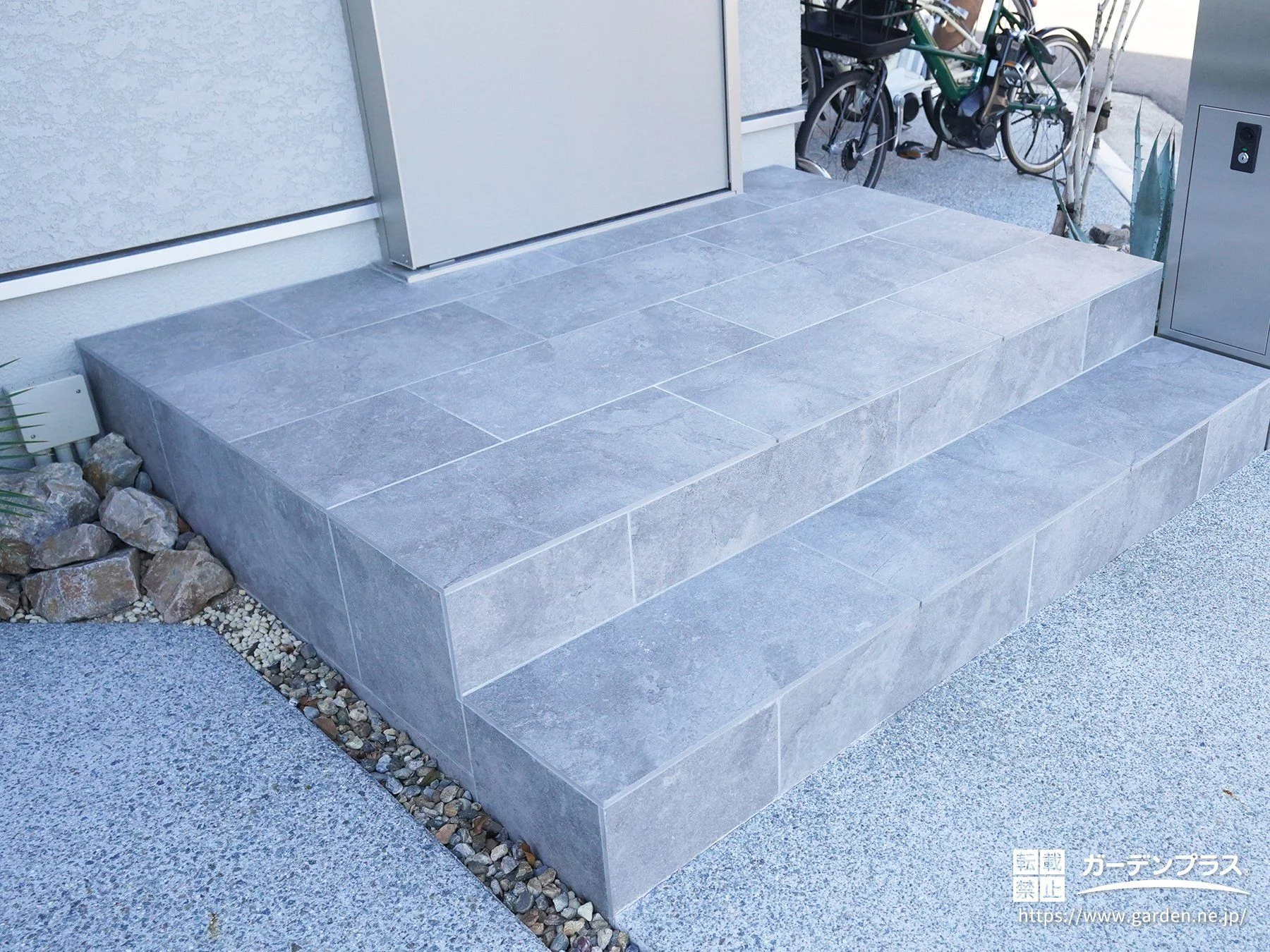 シンプルな外構にも豊かな表情が生まれるロックガーデンのアクセント