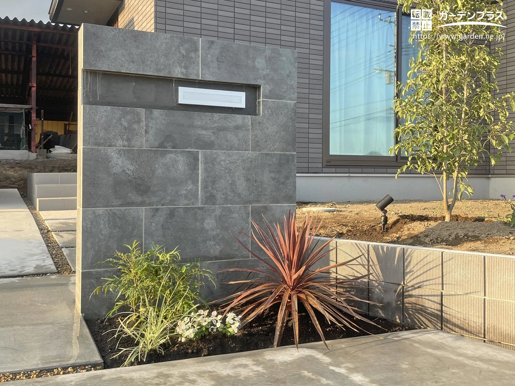 硬質な印象に植栽で柔らかさを加えたモダン新築外構