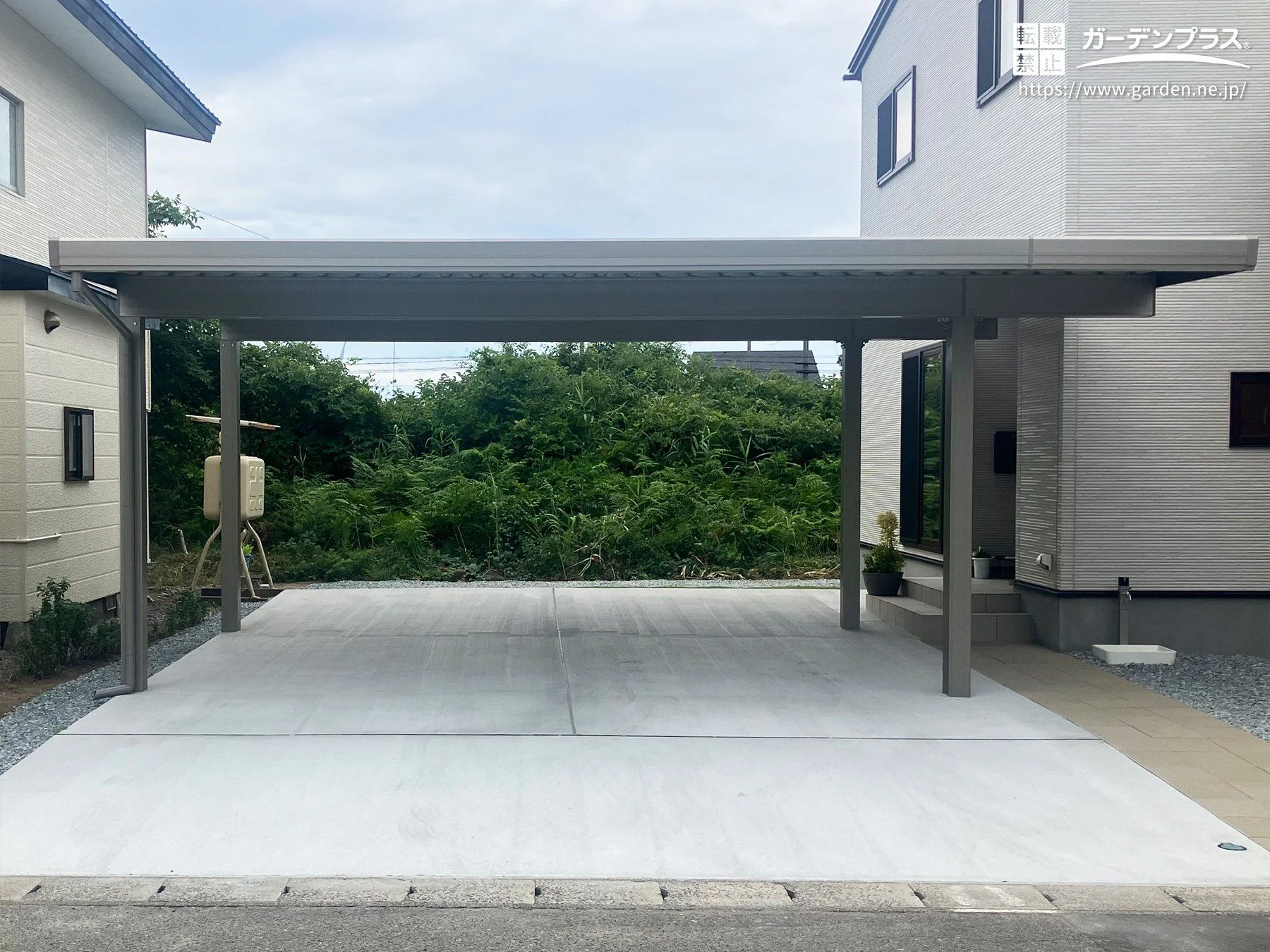玄関前までしっかりカバーする開口延長カーポート