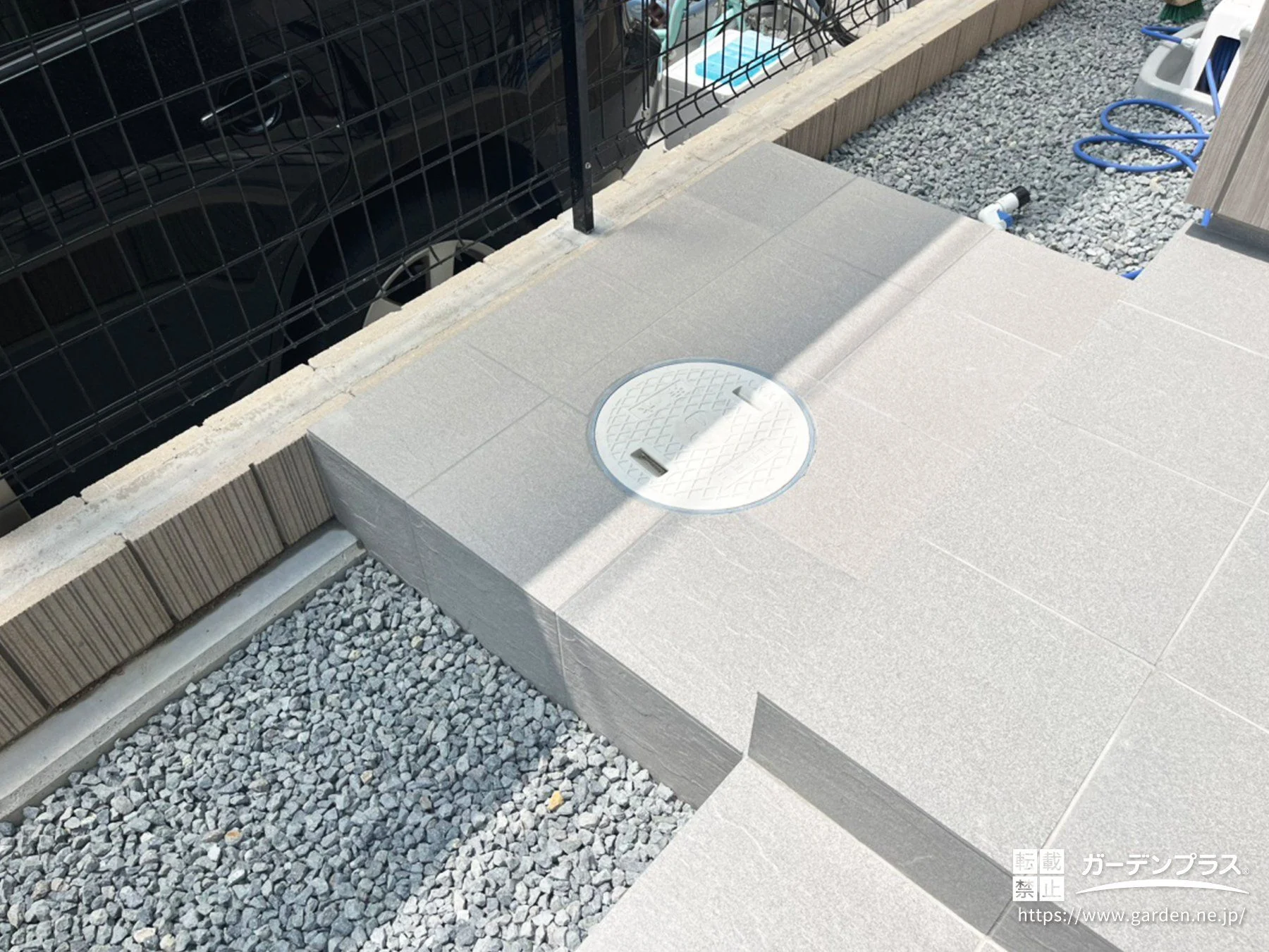 玄関ポーチ階段増設:下地コンクリートブロック + タイル張り アドヴァン コルト ライトグレー