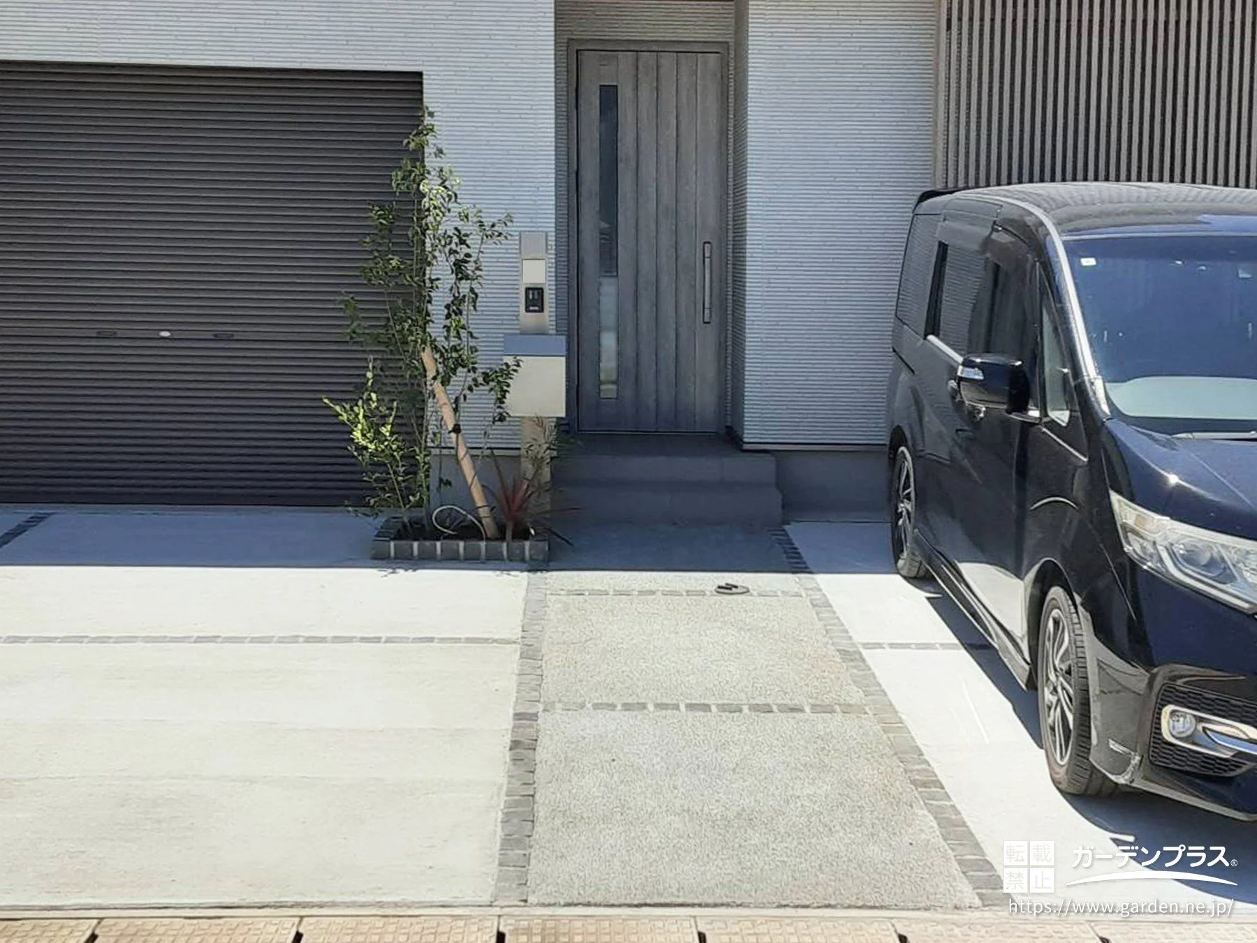 駐車スペース:土間コンクリート 刷毛引き仕上げ + ピンコロ目地