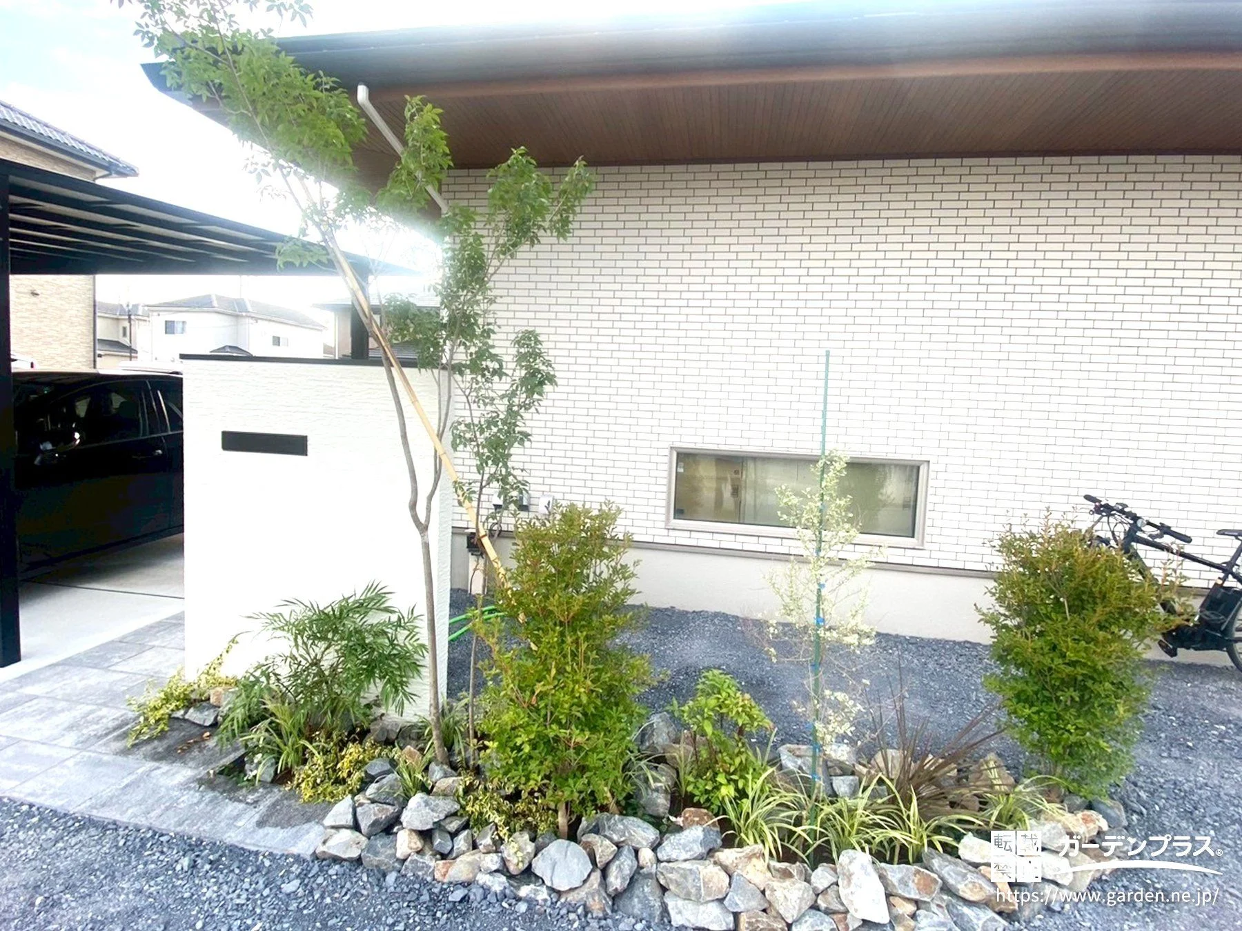 自然のぬくもりを感じる、グリーンに包まれた新築外構