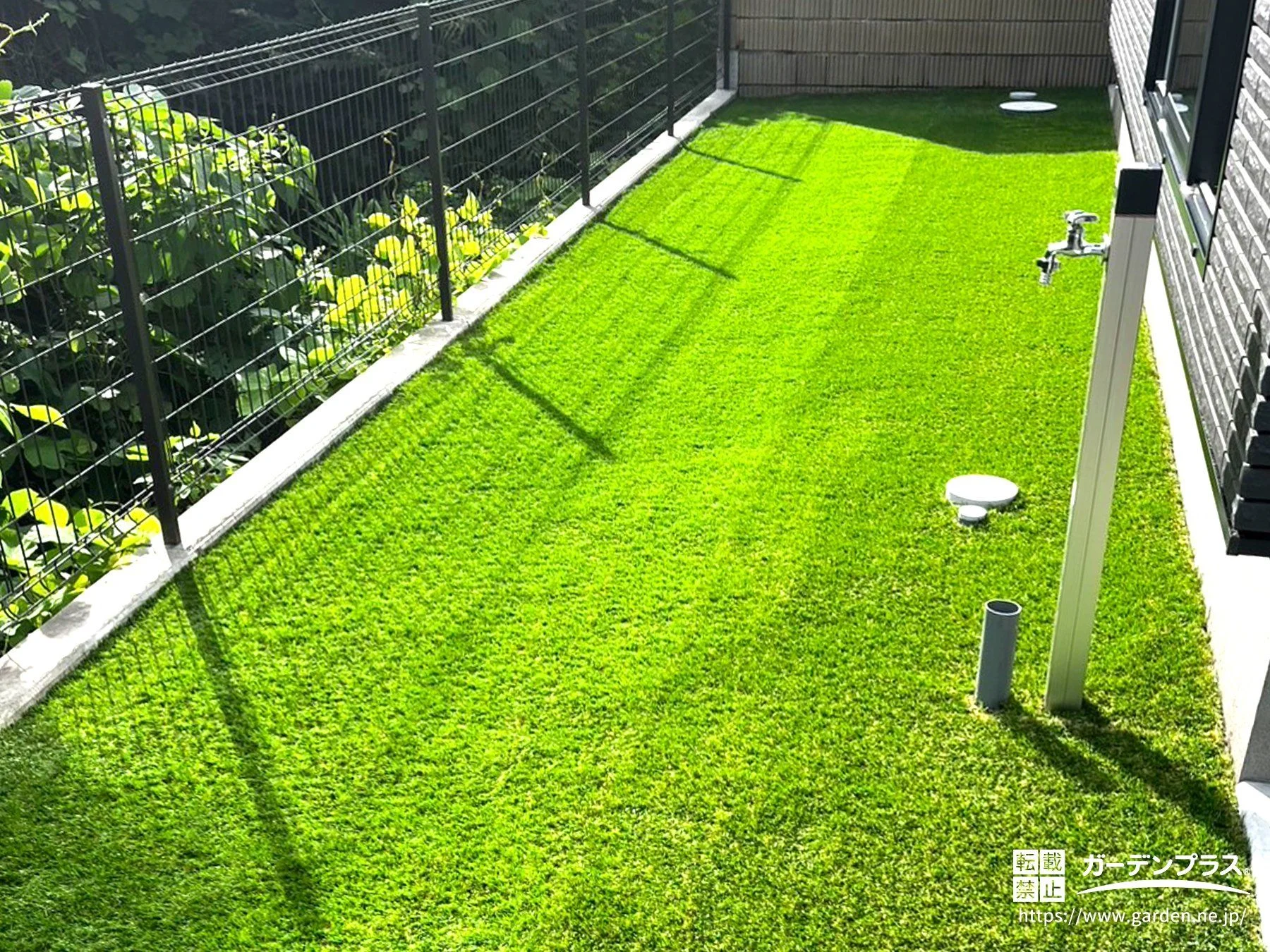 手間いらずで気持ちいい、緑が広がる人工芝の庭