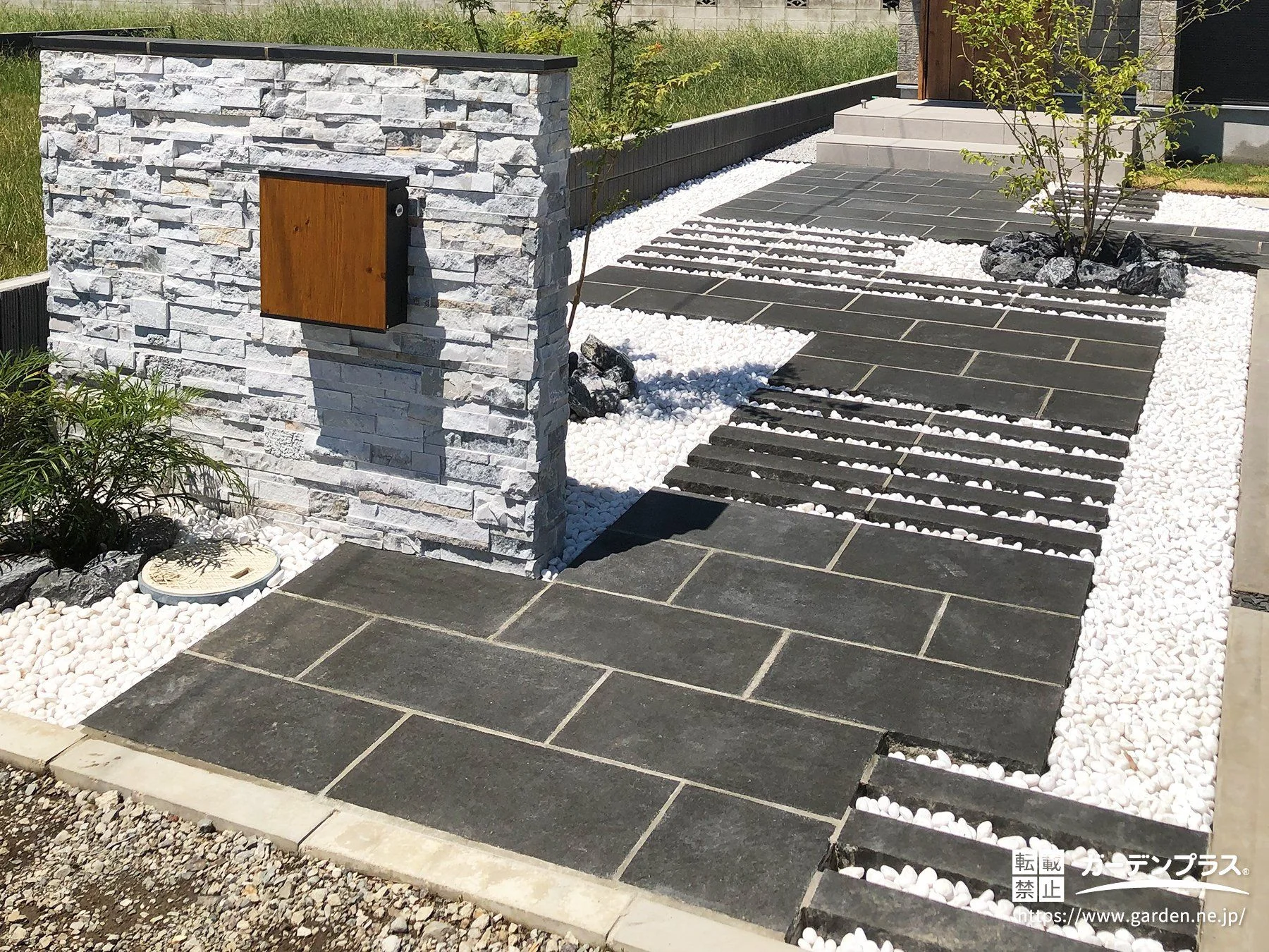 アプローチ:方形石張り マチダ ノアールストーン + マチダ ガナデア