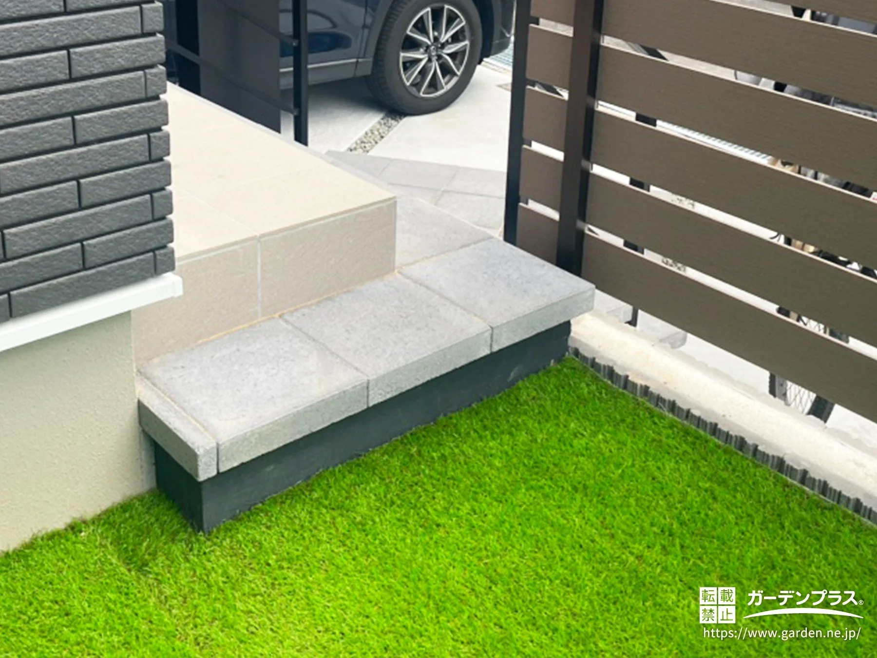 アプローチ階段:蹴込 コンクリートブロック 塗装仕上げ + 踏面 コンクリート平板 東洋工業 ドゥーステップ ダークグレー