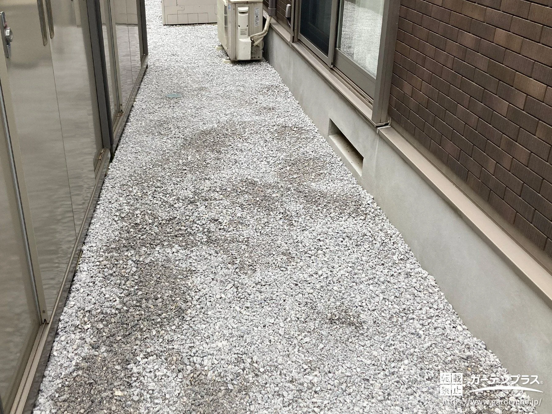 犬走りに防草シートと白砂利を敷設しました。明るい印象で雑草の発生を防止してくれます。