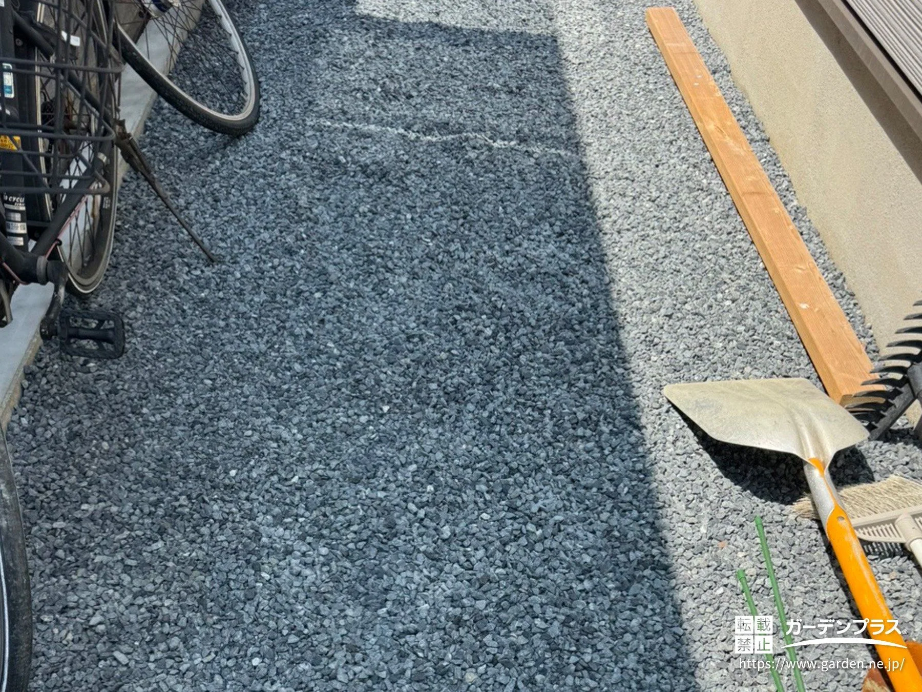 犬走りに防草シートと砂利を敷設しました。水はけ良く、雑草対策もできるためいつでも綺麗な状態を保てます。