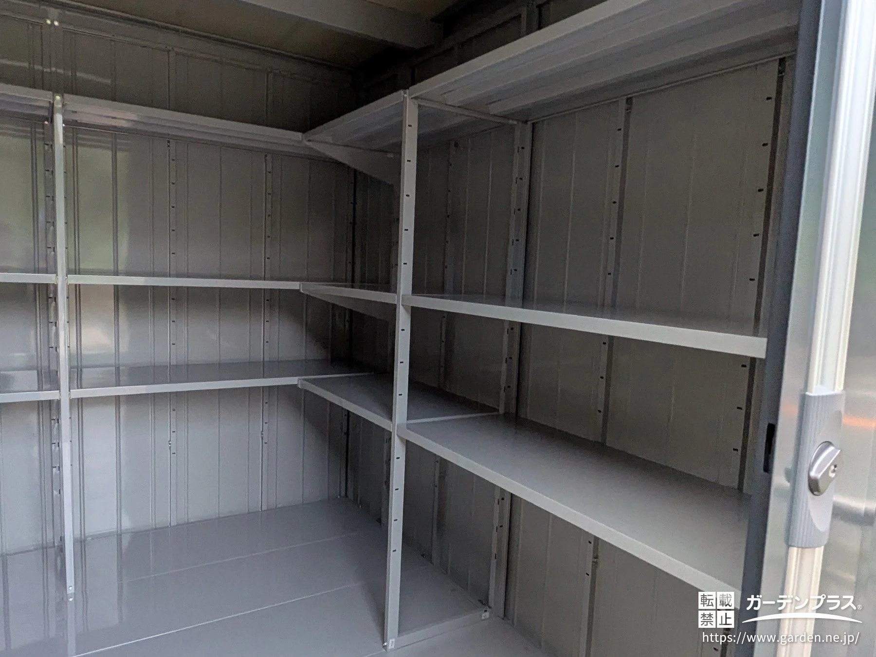 物置:イナバ物置 FORTA 多雪型 2630×2630×2385 チャコールグレー + ミストグレー + オプション 棚板Cセット・雨樋・結露軽減材