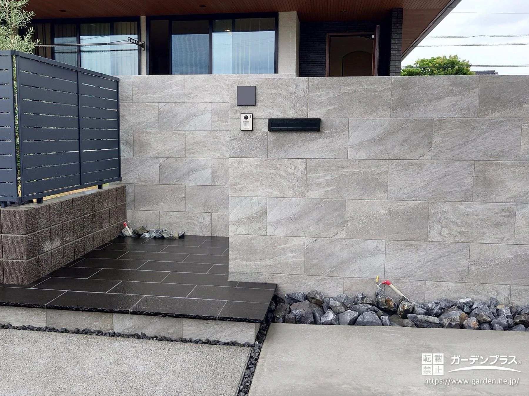上質感を引き立てる、グレーの大判タイル門柱