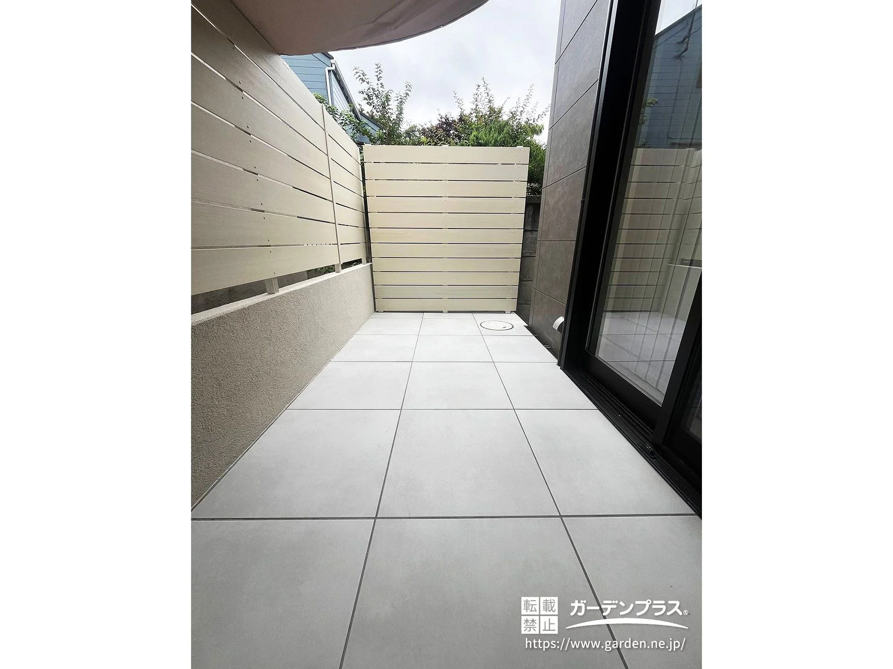 タイルデッキ:下地コンクリートブロック + タイル張り アイコットリョーワ アーレイ D60