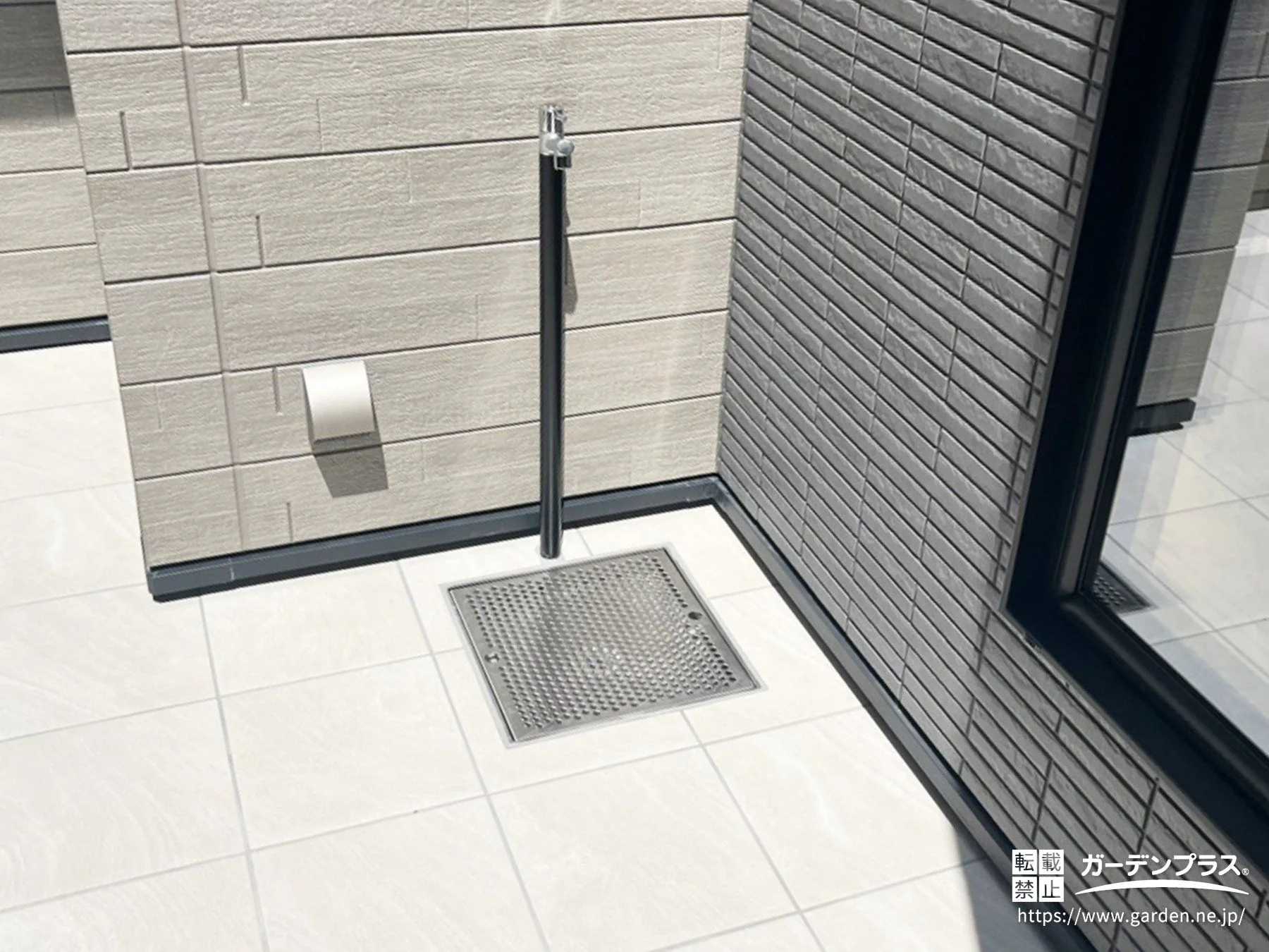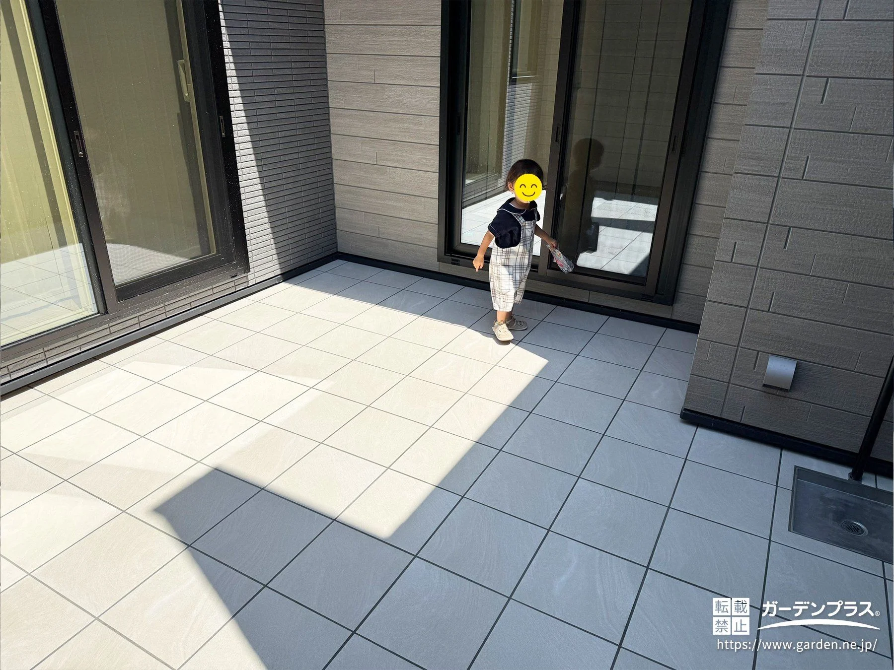 タイルデッキ:下地コンクリートブロック + タイル張り LIXIL パセオ