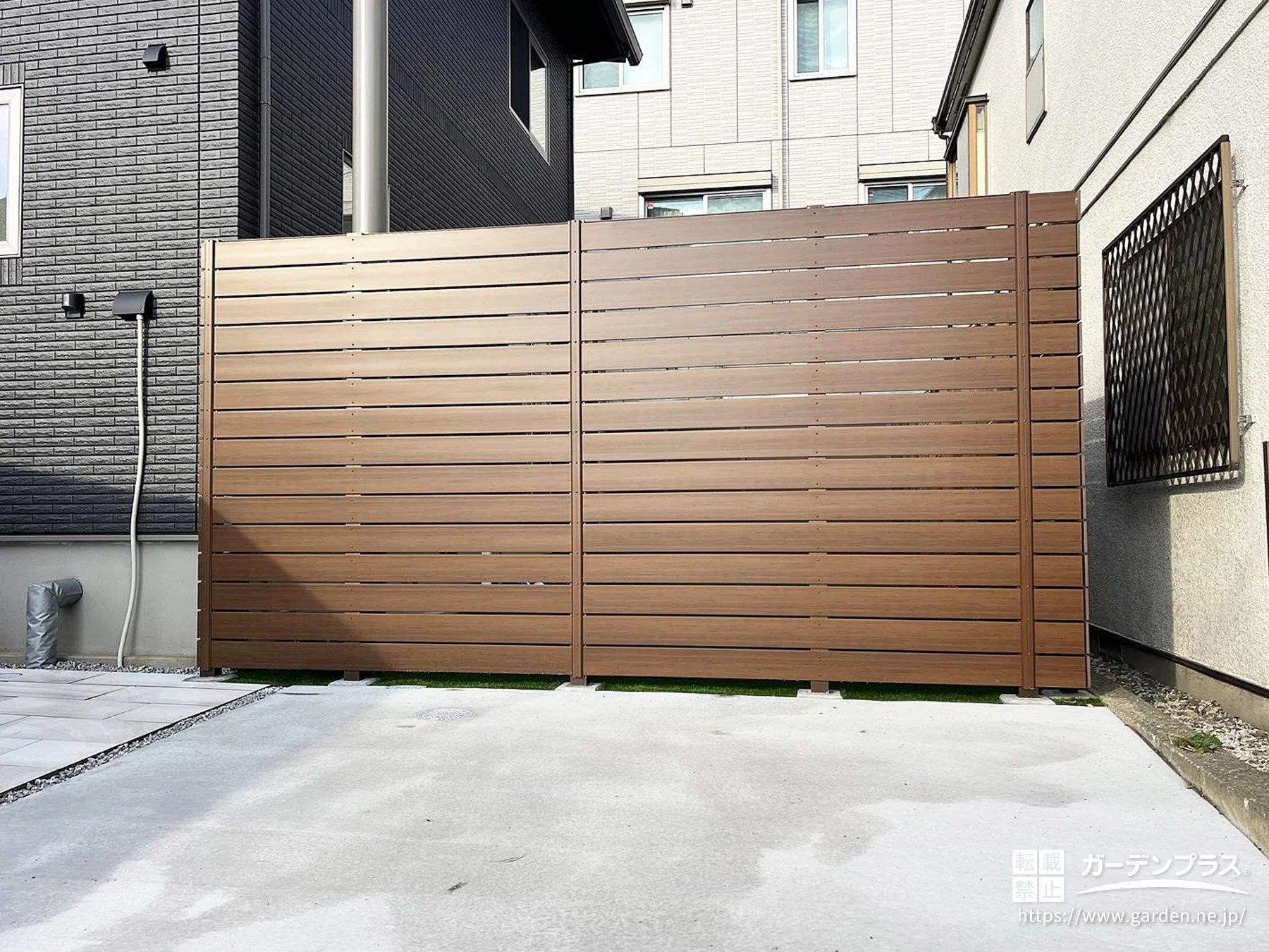 目隠しフェンス:F&F マイティウッドデコll 隙間10mm/板 マロン + 柱ブラウン