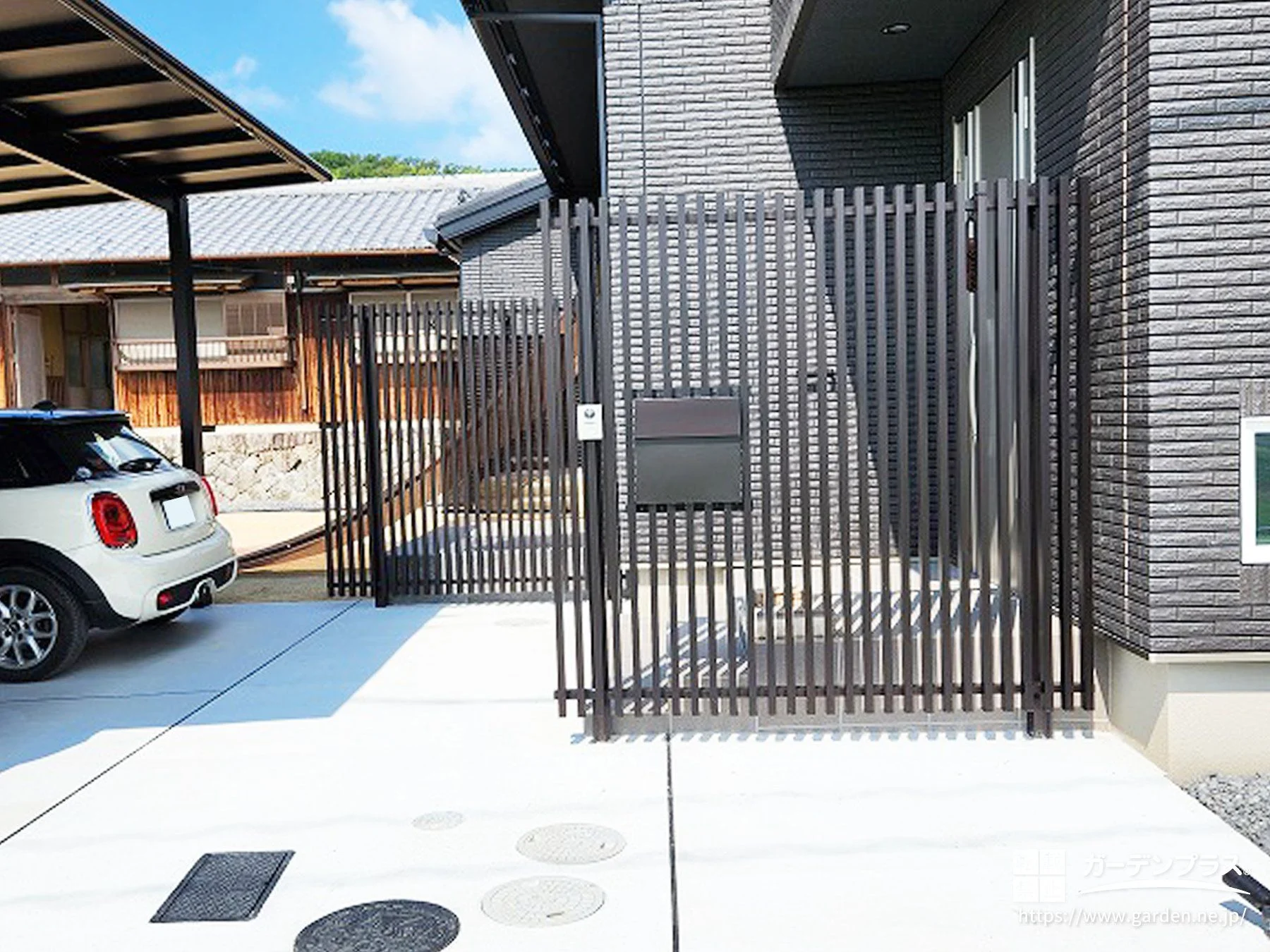 スクリーンフェンス兼機能門柱:YKKAP ルシアススクリーンフェンスS02型 カームブラック