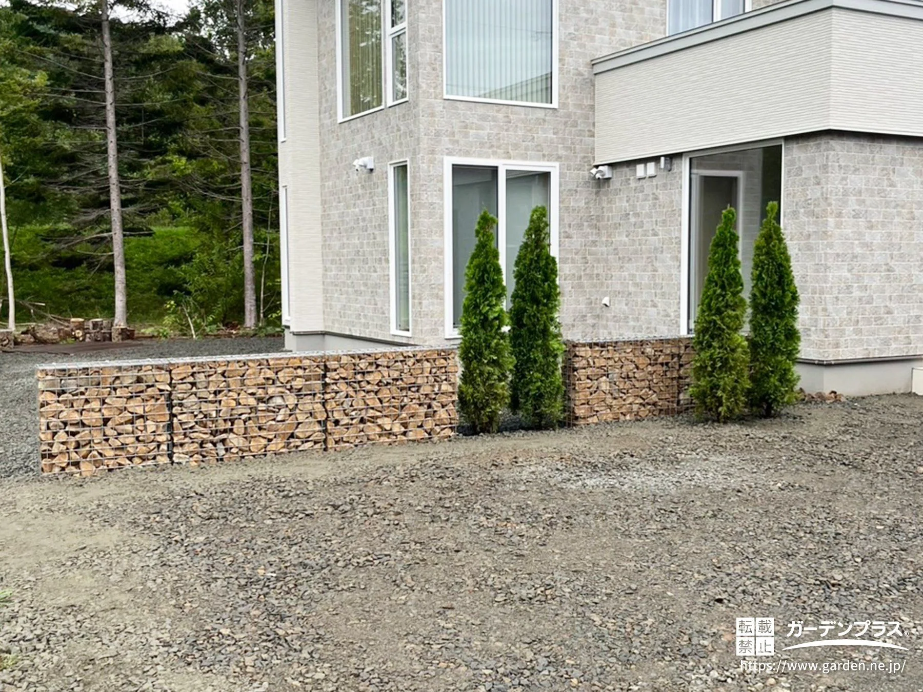 ガビオンとコニファーで魅せるナチュラルなデザイン塀