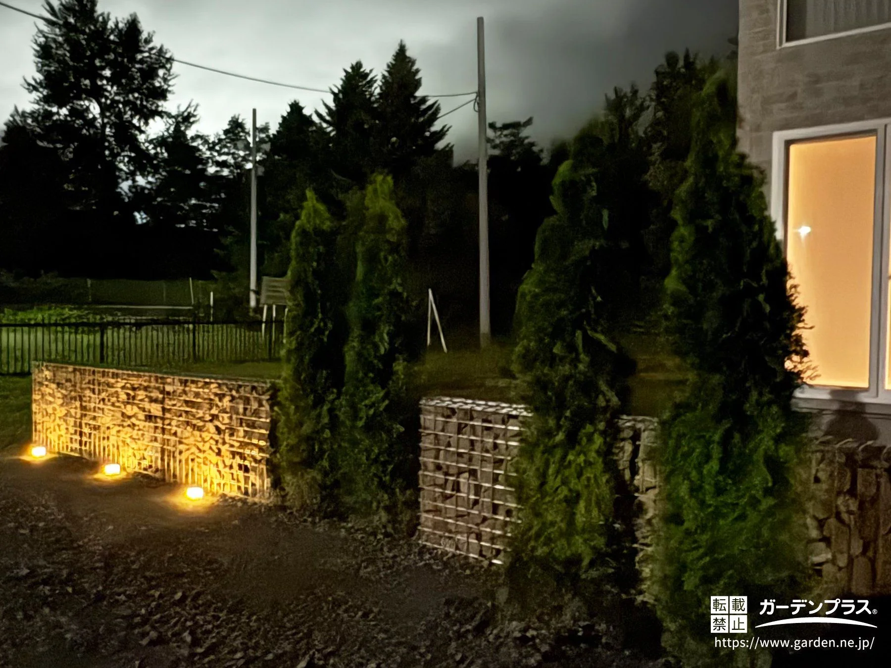 自然の風景に溶け込むガビオンが印象的な新築外構