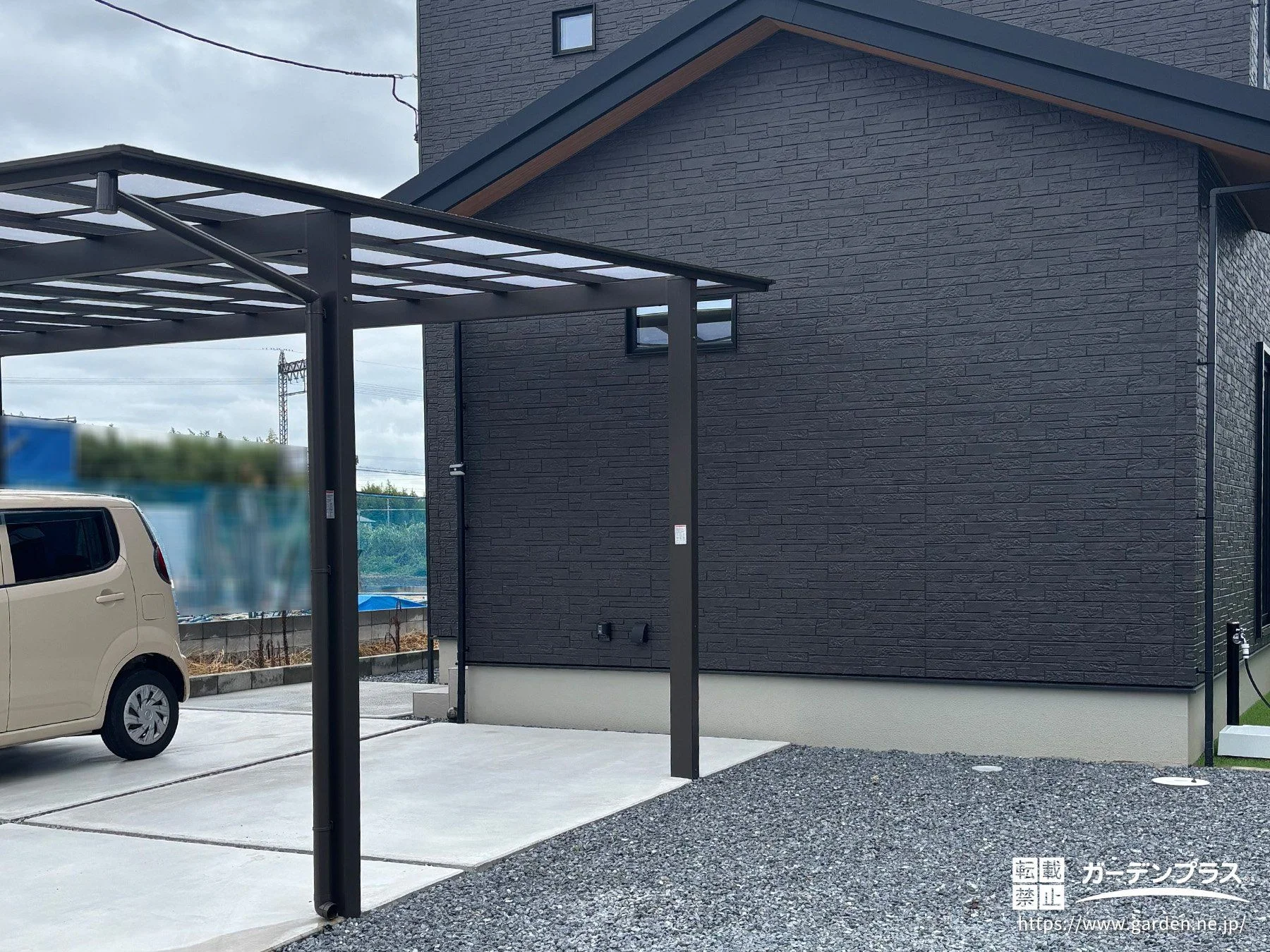 駐車スペースに土間コンクリートを打設し、足元を平らに整えました。頭上にはカーポートを設置し、お車を清潔に保ちます。