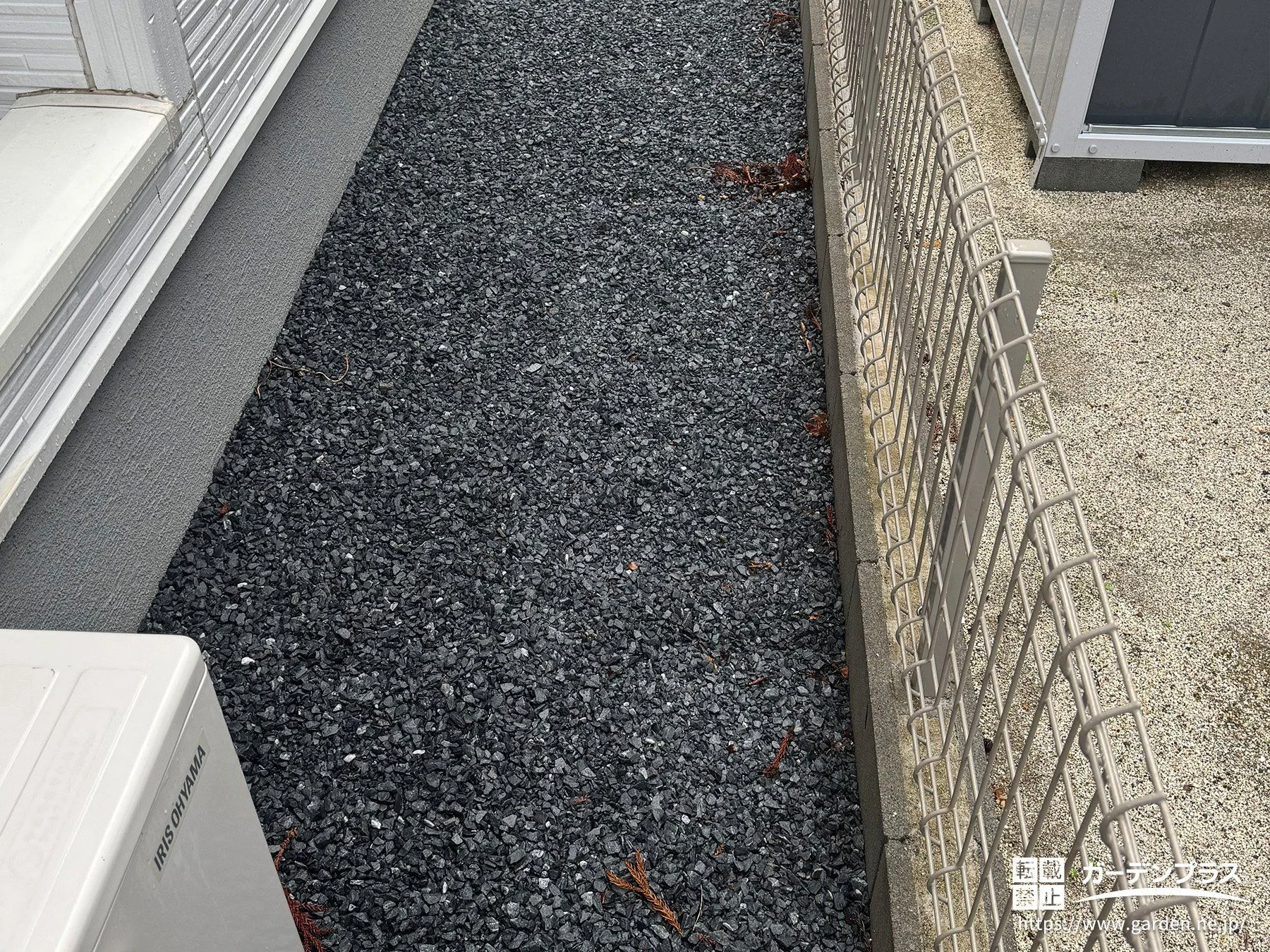 犬走りに防草シートと砂利を敷設しました。日々の草むしりの手間をかけずに綺麗な空間を保てます。