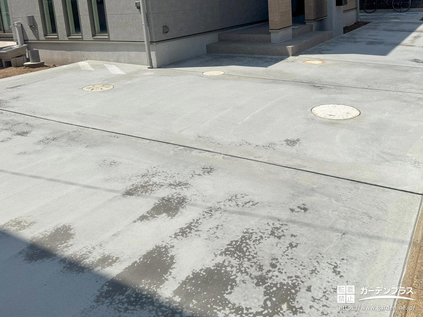 駐車スペース:土間コンクリート 金鏝仕上げ + 伸縮目地