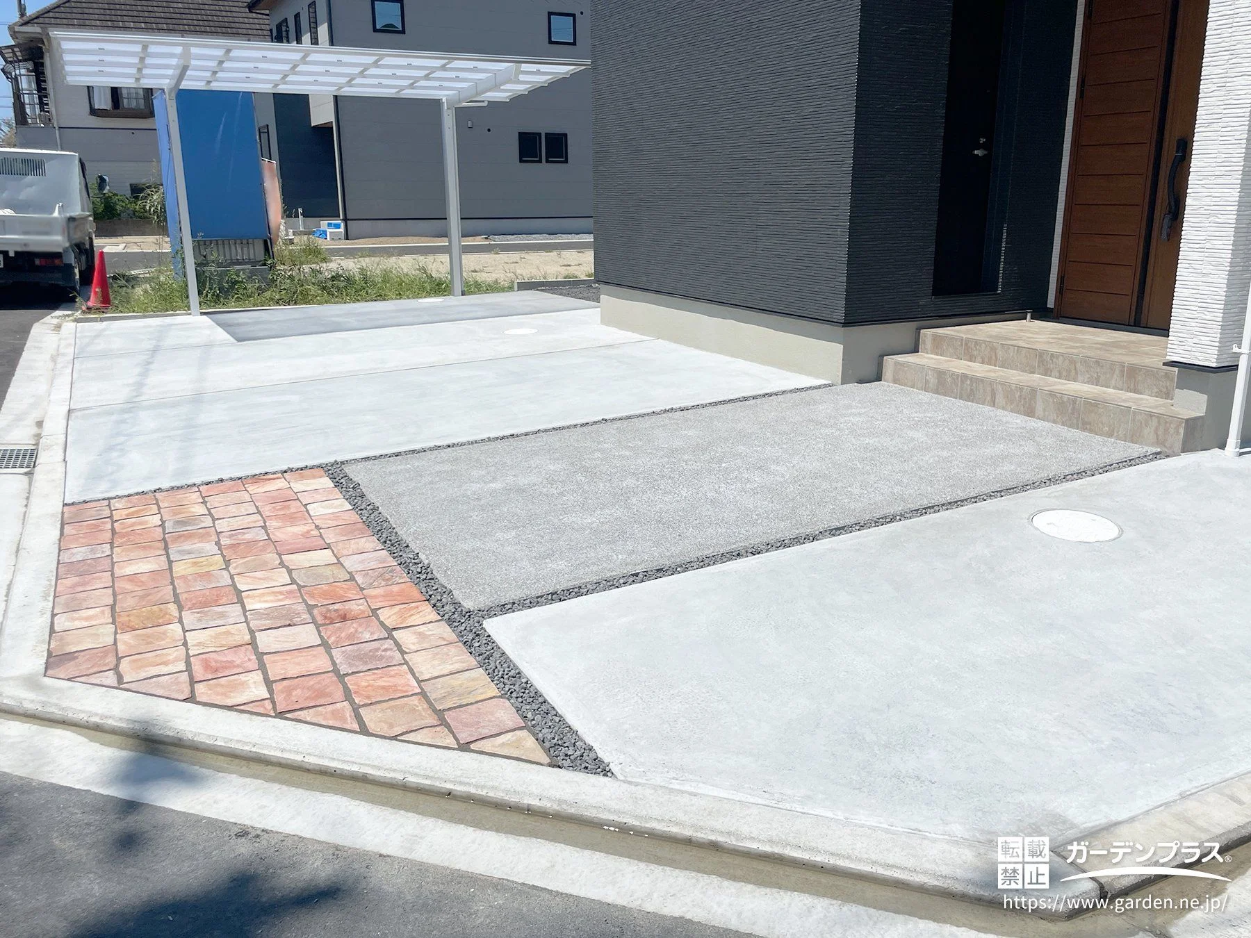 駐車スペース:土間コンクリート 金鏝仕上げ + 伸縮目地