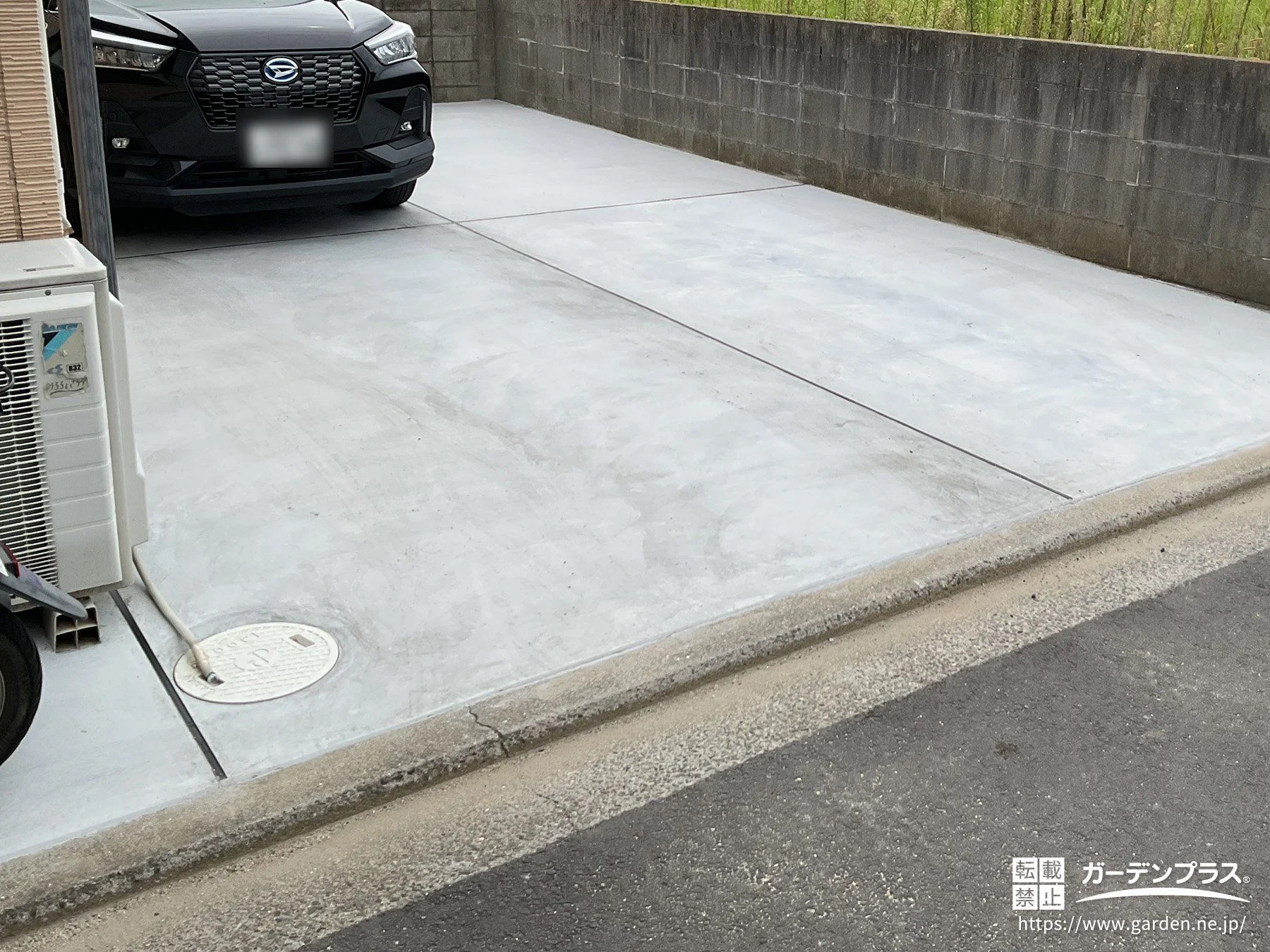 駐車スペースに土間コンクリートを打設しました。平らな足元で掃除もしやすいため、いつでも清潔な空間を保てます。