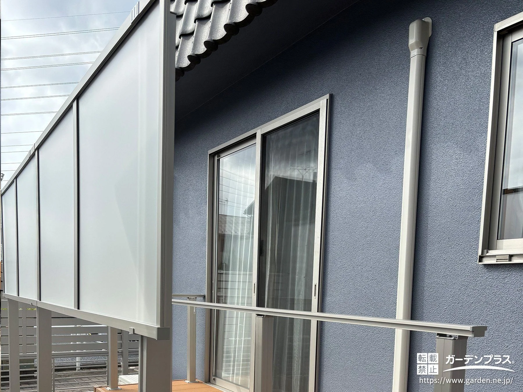 デッキ前に目隠しフェンスを設置しました。洗濯物干し等の家事をされる際に、外からの視線が気にならず快適にお使いいただけます。必要な上部のみにパネルを取り付けているため、圧迫感を感じることもありません。