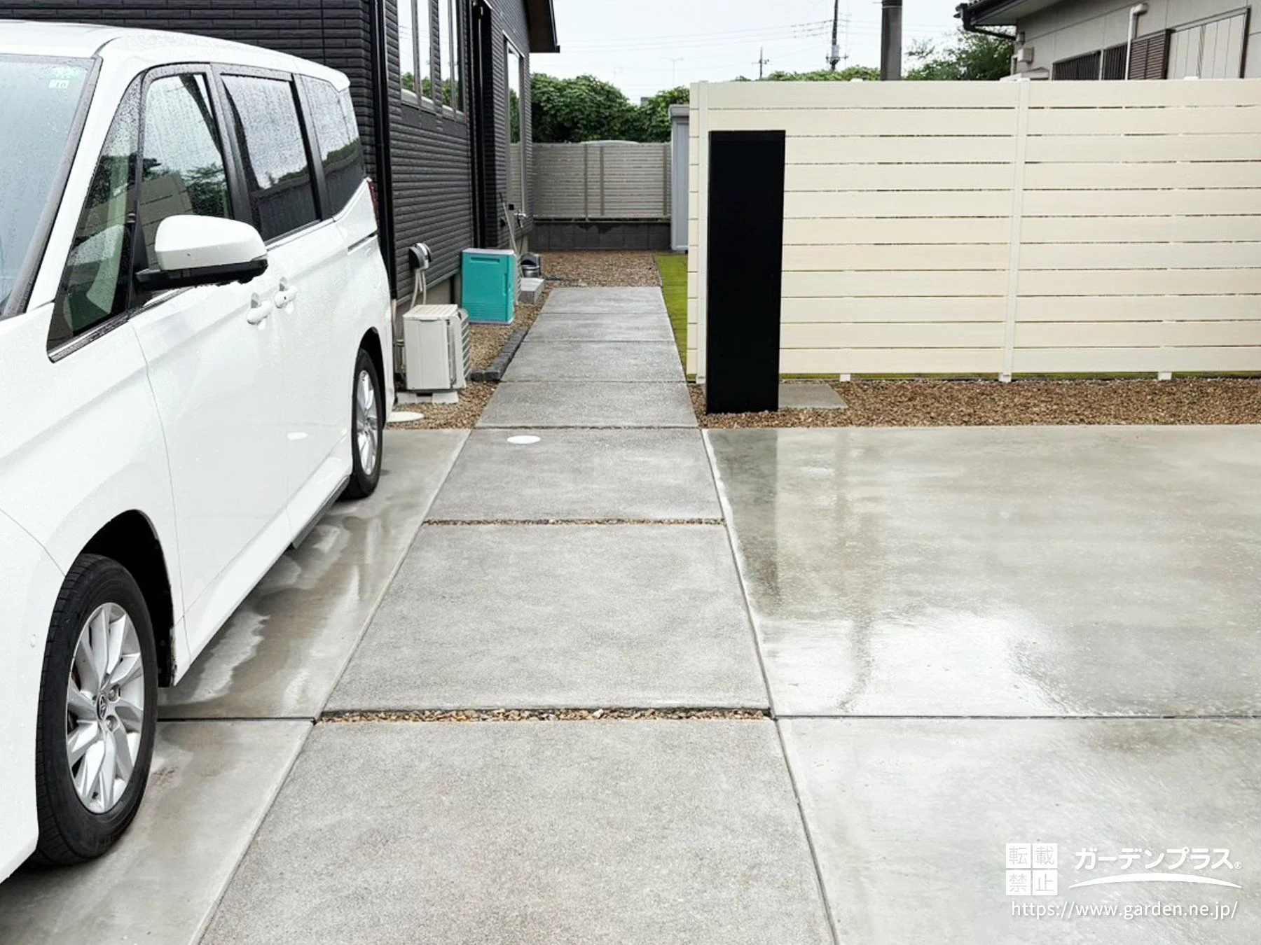 アプローチ:土間コンクリート 洗い出し仕上げ + スリット 化粧砂利