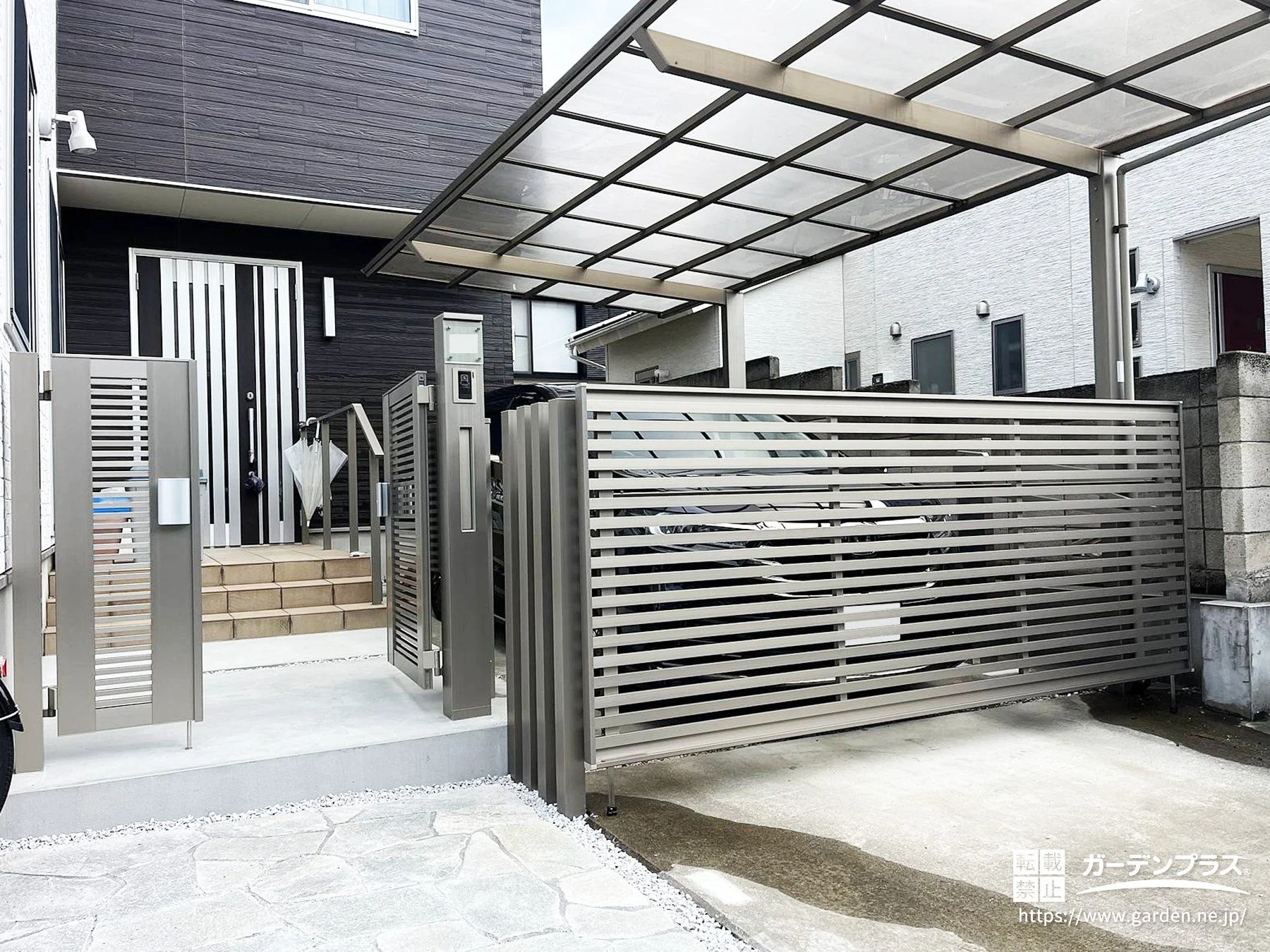 2台目の車の購入を見据え、これまで庭として使っていたスペースを思い切って駐車場へとリフォームしました。カーゲートや門まわりをセットバックし、出入りのしやすい動線を確保することで、スムーズに駐車が可能に。限られたスペースでも、空間の使い方やレイアウトを工夫することで“停めやすさ”と“安心感”を両立しています。さらにアプローチには乱形石を敷き、車が通っても問題ない強度を持ちながら、玄関まわりに自然な表情と高級感をプラス。暮らしの変化に寄り添い、使いやすさが一段と高まる外構に生まれ変わりました。