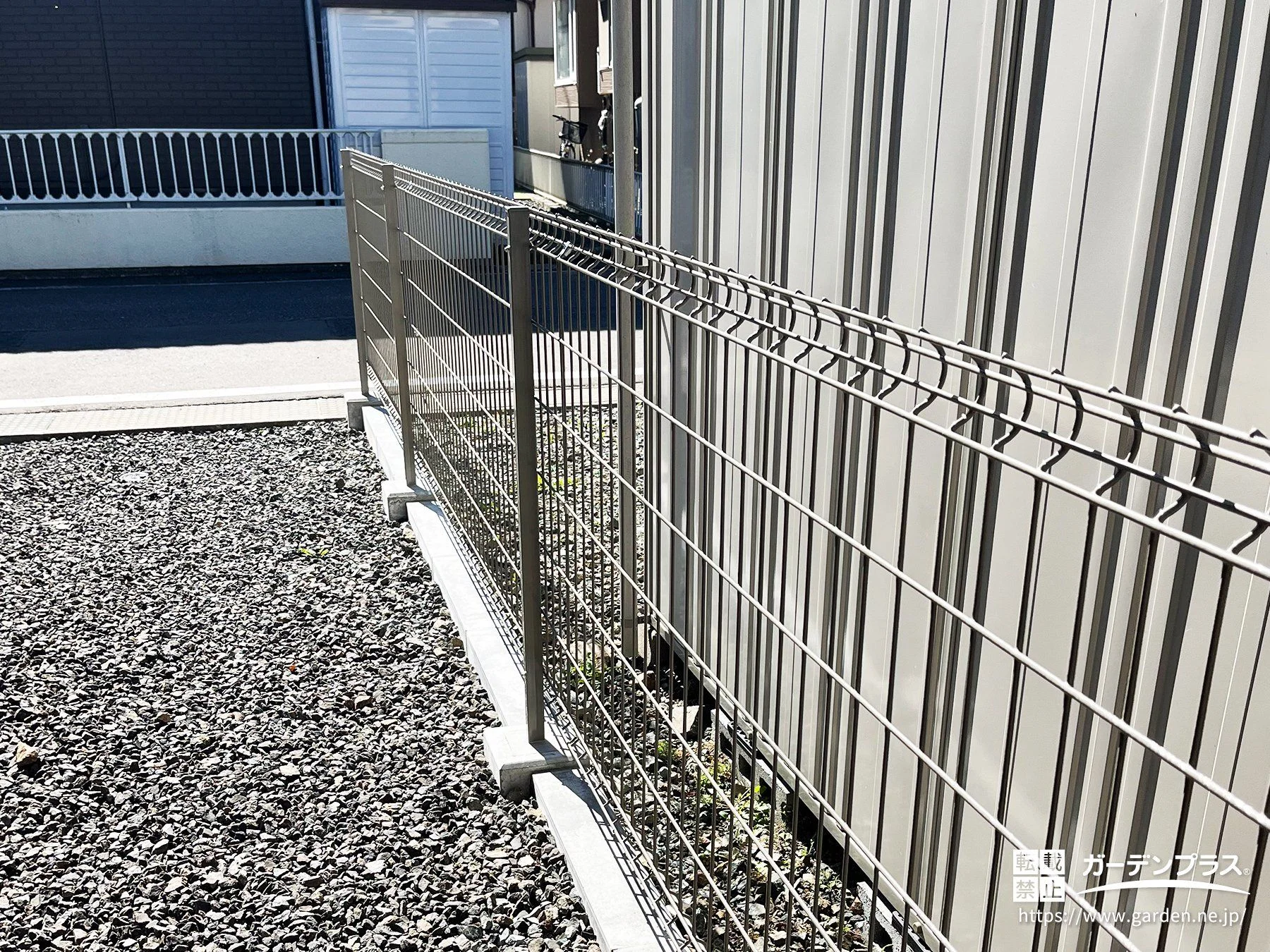 視線を遮りすぎず、ほどよく境界を示せるメッシュフェンスを設置しました。敷地形状に合わせて高さと位置を調整し、既存の外構に自然と馴染むようシンプルなデザインを採用。軽やかな印象で風通しも確保できるため、圧迫感が出ないのも魅力です。さりげない仕切りが暮らしの安心感につながります。