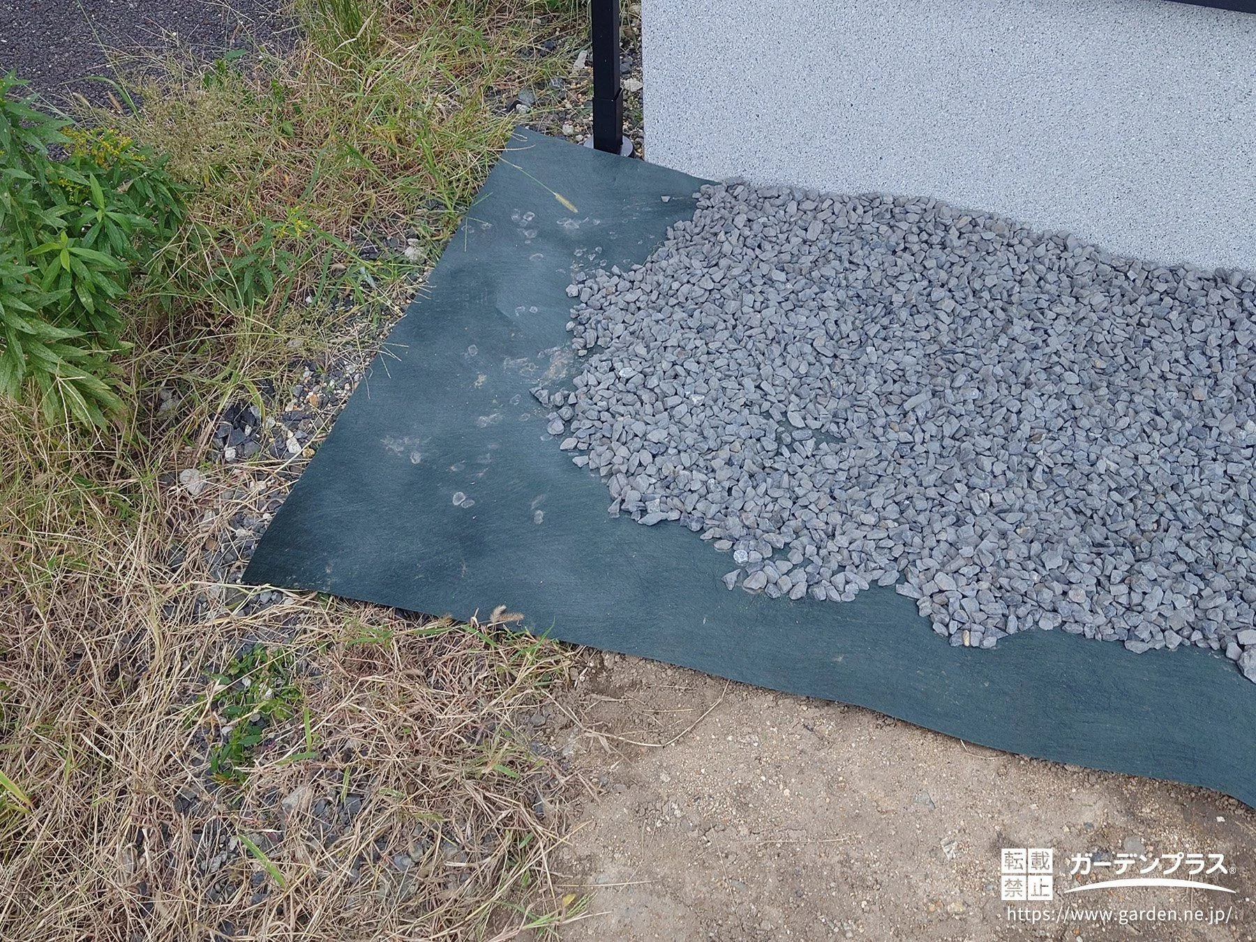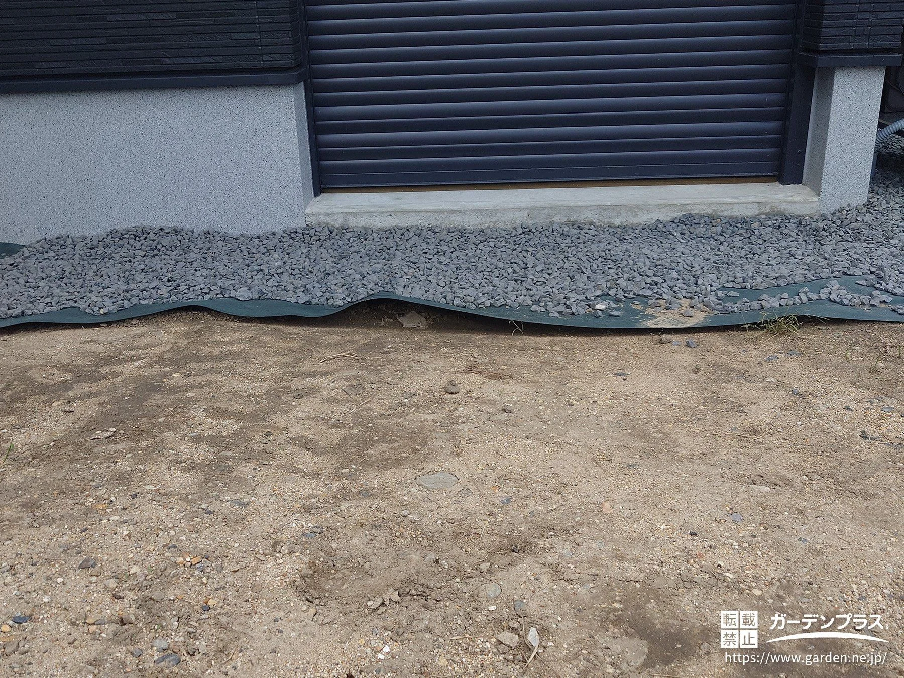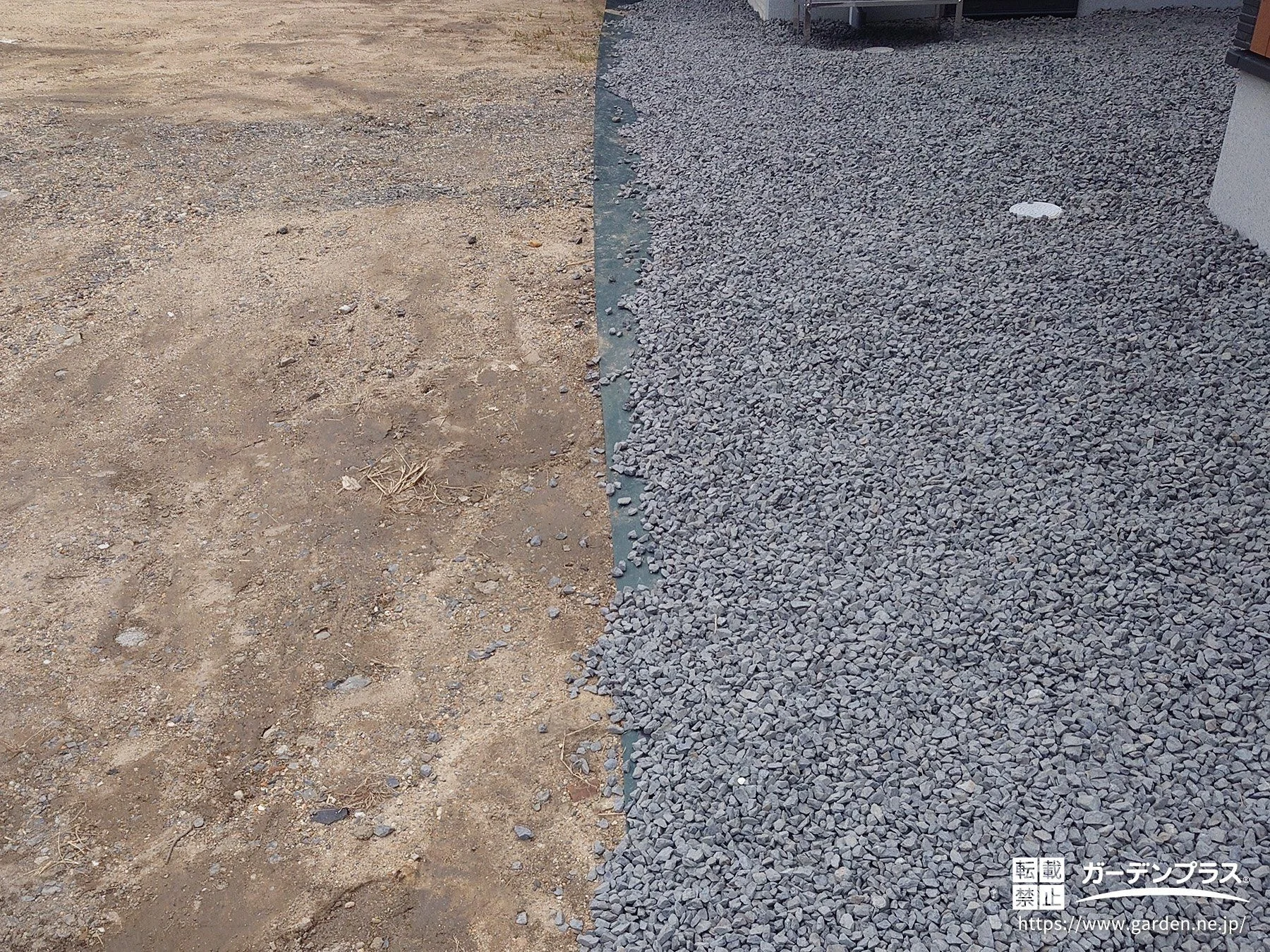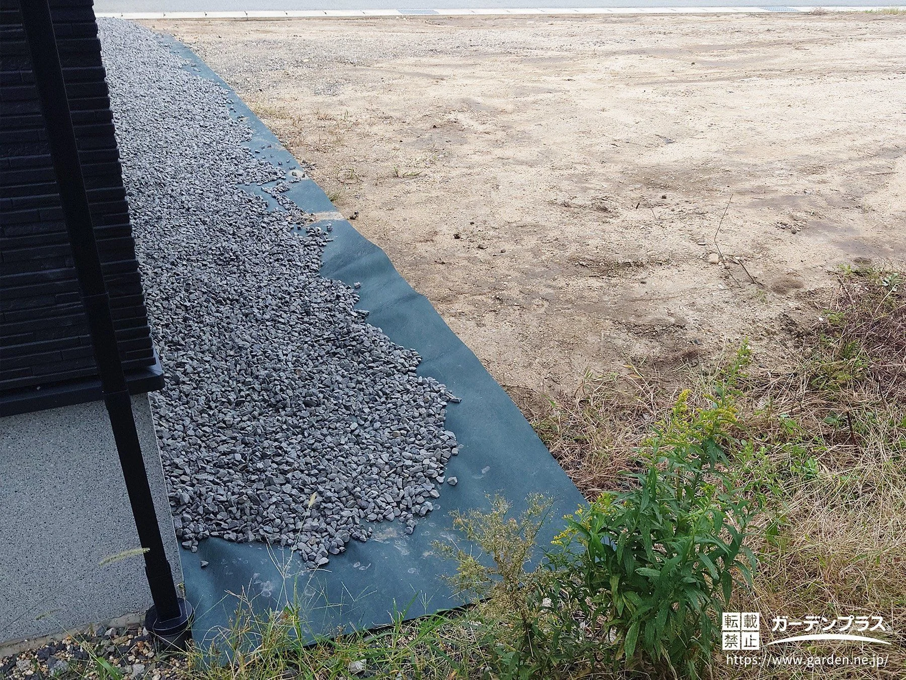 お住まいの外周の一部にアクセントをプラスする割栗石を施工しました。大ぶりの石を重ねるように配置することで、自然の立体感が生まれ、外壁ともよく馴染む落ち着いた景観に演出しています。お庭には防草シートを敷き、その上から砂利を敷き詰めました。草むしりの手間がぐっと軽減され、年間を通してすっきりした状態を保ちやすくなります。駐車スペースにはフラット屋根がスタイリッシュなカーポートを設置してお車を雨風から守りました。お住まいの落ち着いた外観ともよく馴染み、シンプルながら清潔感のあるお庭空間が完成しました。