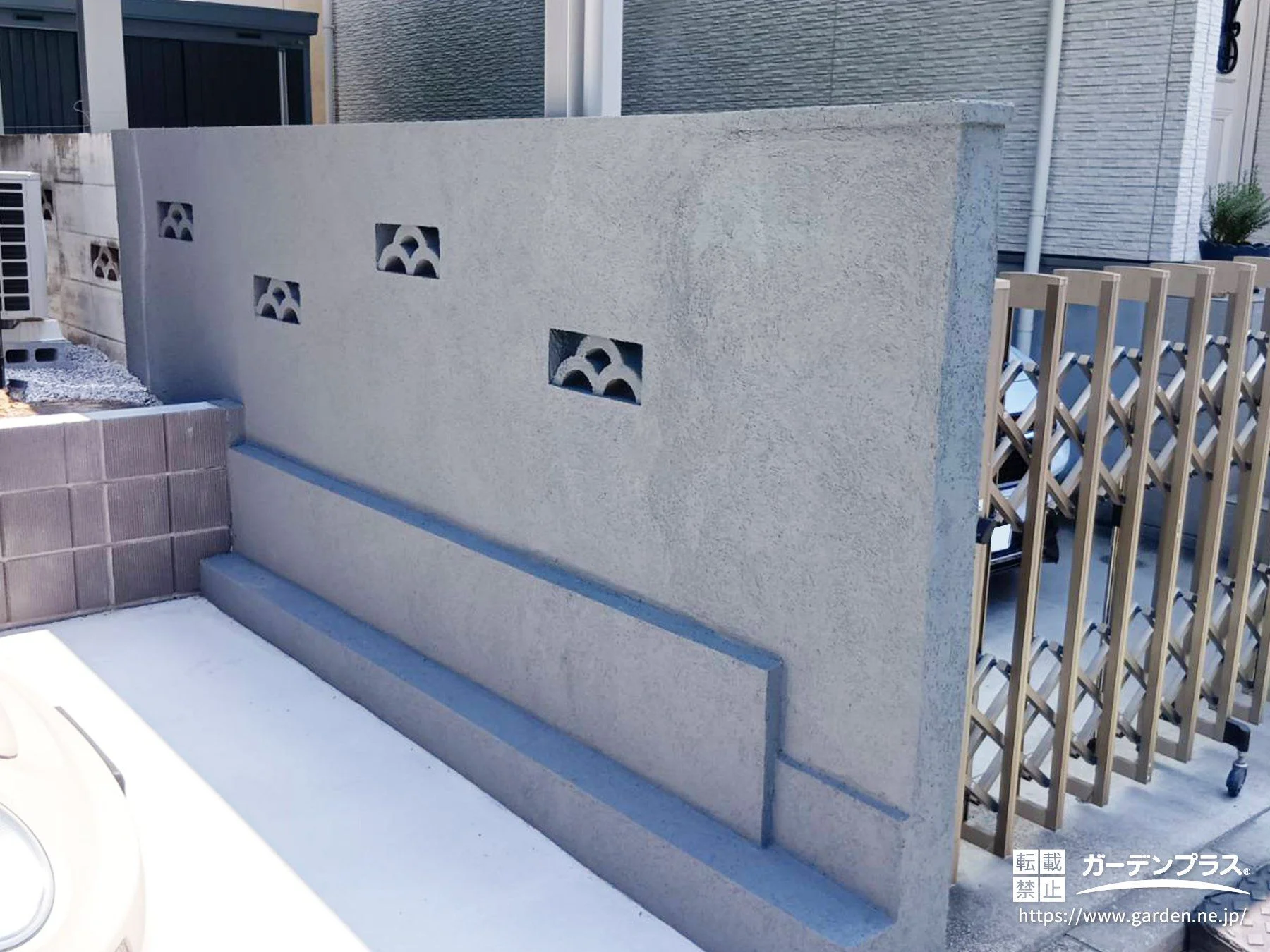 境界フェンス基礎ブロック:コンクリートブロック + ジョリパット塗装仕上げ エンジェントブリック