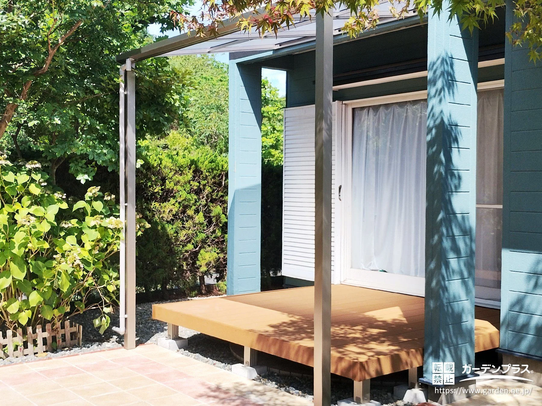 お子さんが友達と安心して過ごせる場所をつくりたい、という想いから主庭全体のリフォームをご相談いただきました。掃き出し窓前には、遊び場としても腰掛けスペースとしても使いやすいテラスとウッドデッキを設け、室内からスムーズにつながる動線に。足元には人工芝とインターロッキングテラスを組み合わせ、裸足でも気持ちよく、雑草管理の負担も抑えています。周囲には花壇を配置し、季節の草花を楽しめる工夫もプラス。屋根、ウッドデッキ付きのテラスが、天候を気にせず集まれる、家族や友人との時間が増える庭に仕上がりました。