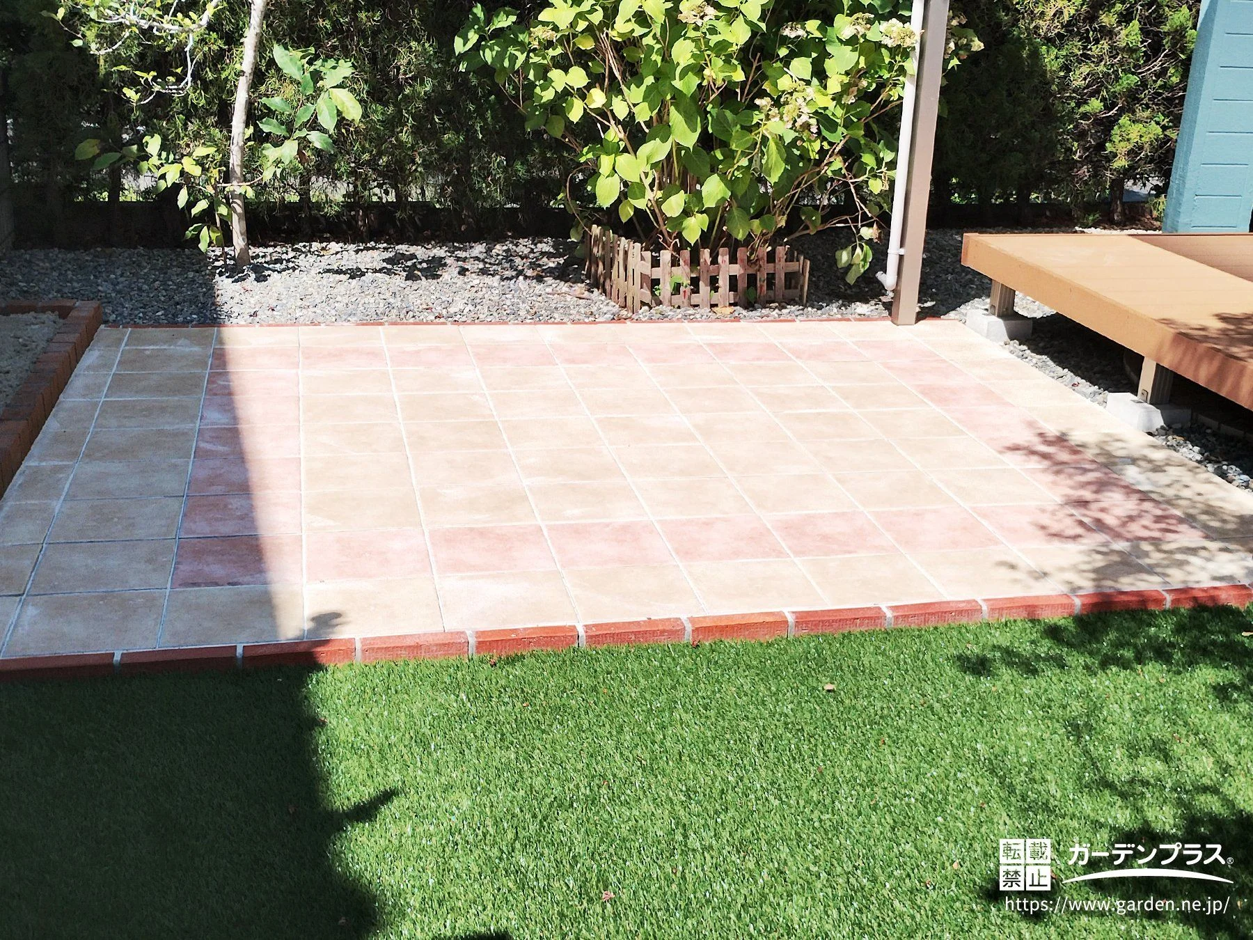 庭時間がもっと楽しくなる、やさしい色合いのインターロッキングテラス