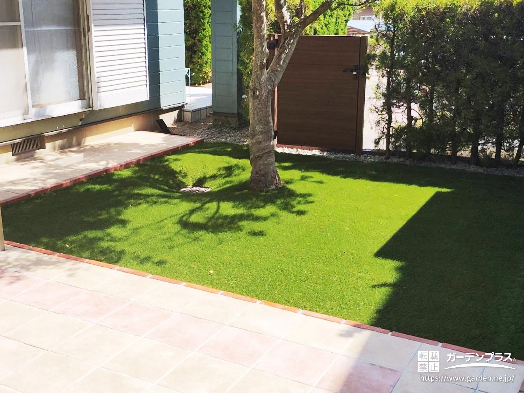 主庭芝部分:防草シート ザバーン + 人工芝