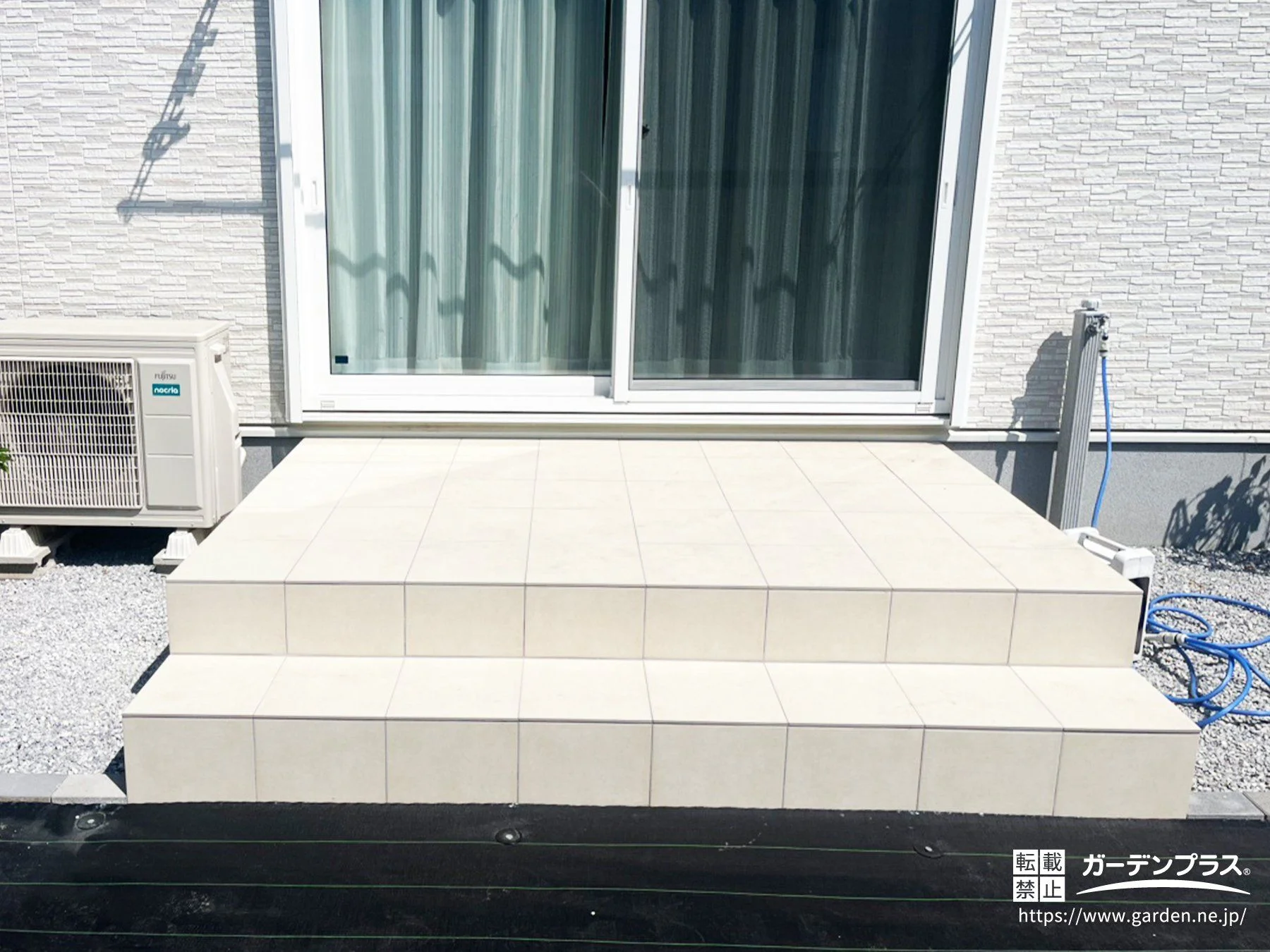 タイルデッキ:下地コンクリートブロック + タイル張り メイクランド タイル