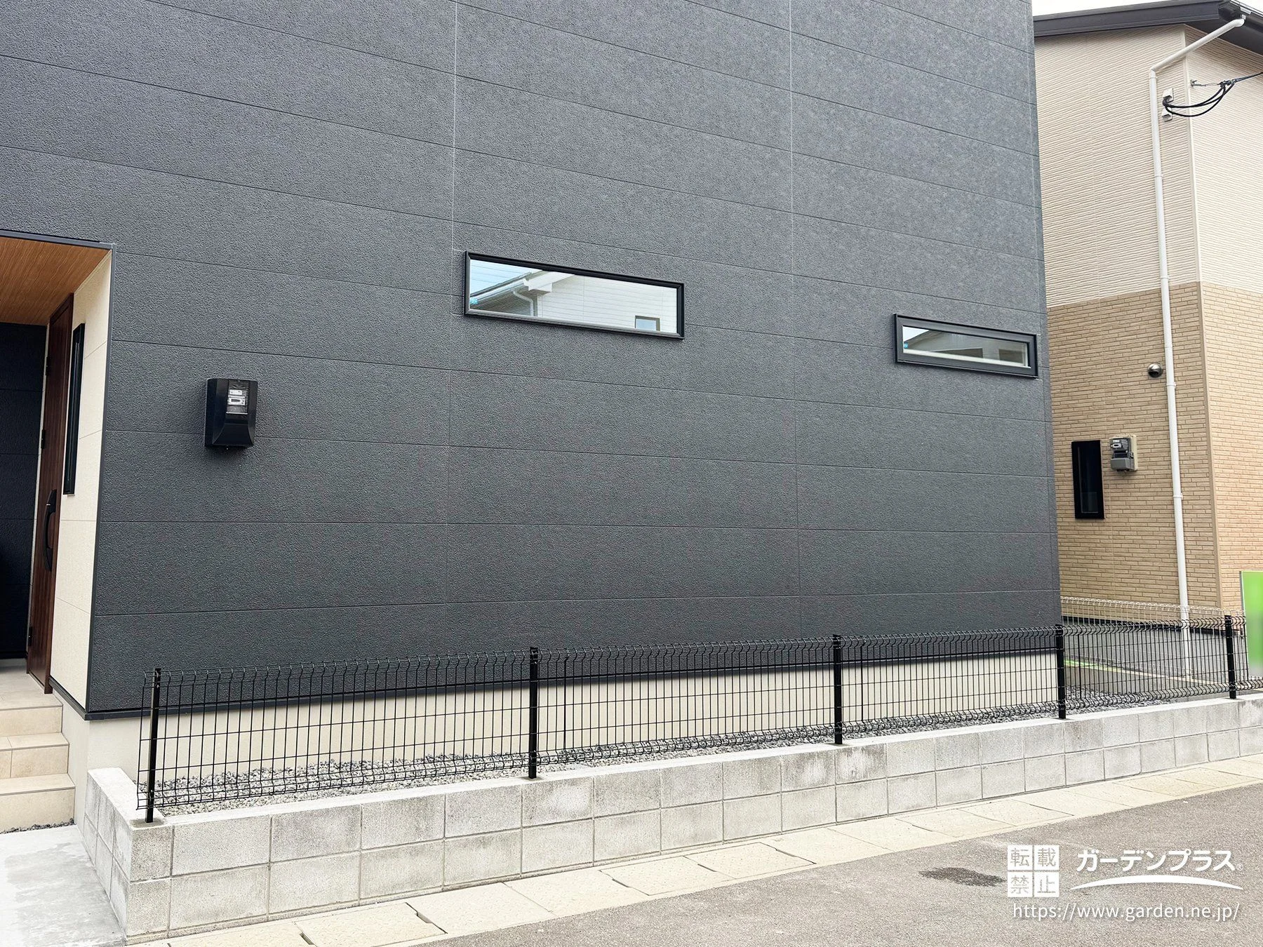 道路に面した境界は、圧迫感を出さずに安心感を確保することを重視しました。コンクリートブロックを土留めとして兼用し、その上にフェンスを設けることで、敷地内の土の流出を防ぎながら安全性を確保。外からの見通しが良いため、防犯面でも不安を感じにくい配置です。暮らしを守りつつ、周囲の景観にもなじむ境界まわりに仕上げました。