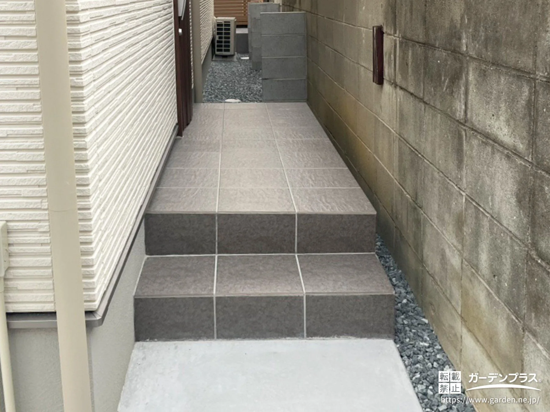 玄関ポーチ階段延長:ブロックベース + コンクリートブロック タイル張り 300角 アイコットリョーワ マディソン