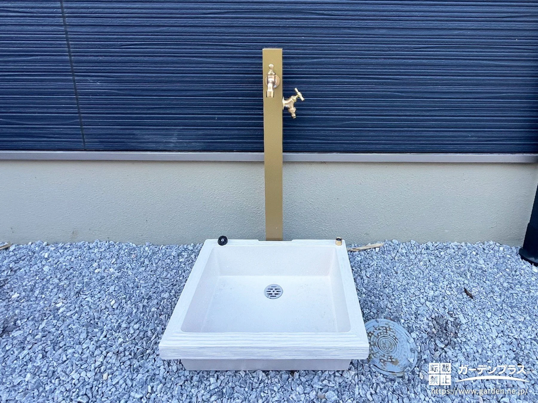 シンプルなデザインの立水栓とガーデンパン
