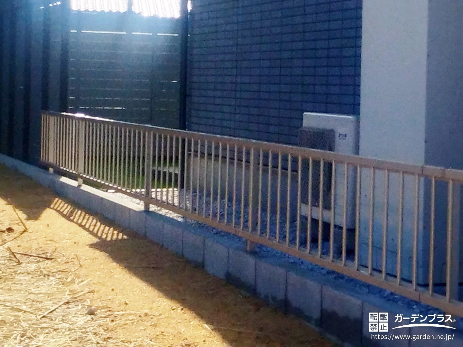 境界フェンス基礎:ブロックベース + コンクリートブロック