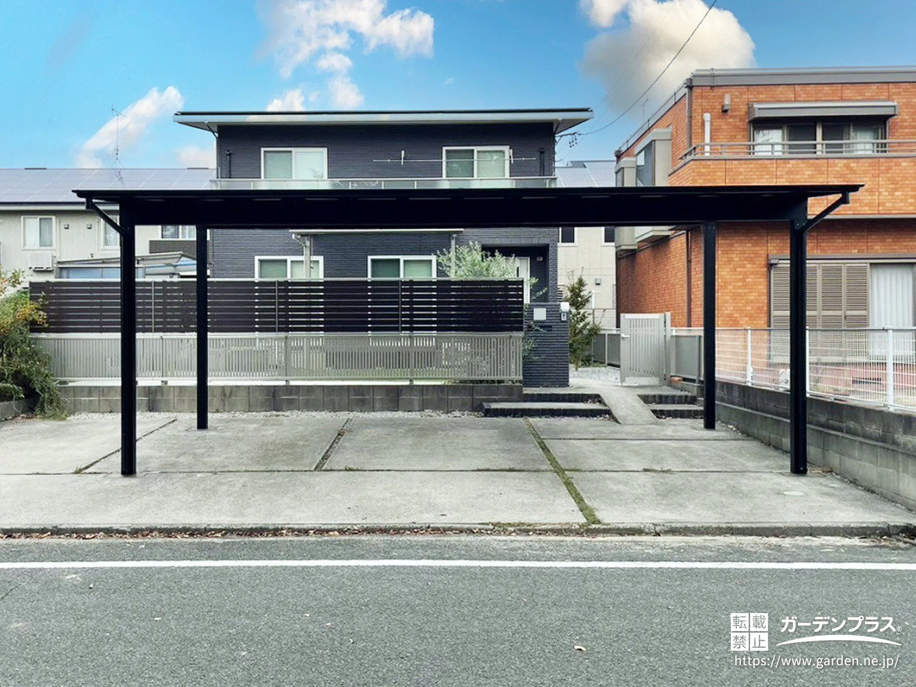 ブラック屋根で魅せる、すっきりとした3台用カーポートの後付け工事