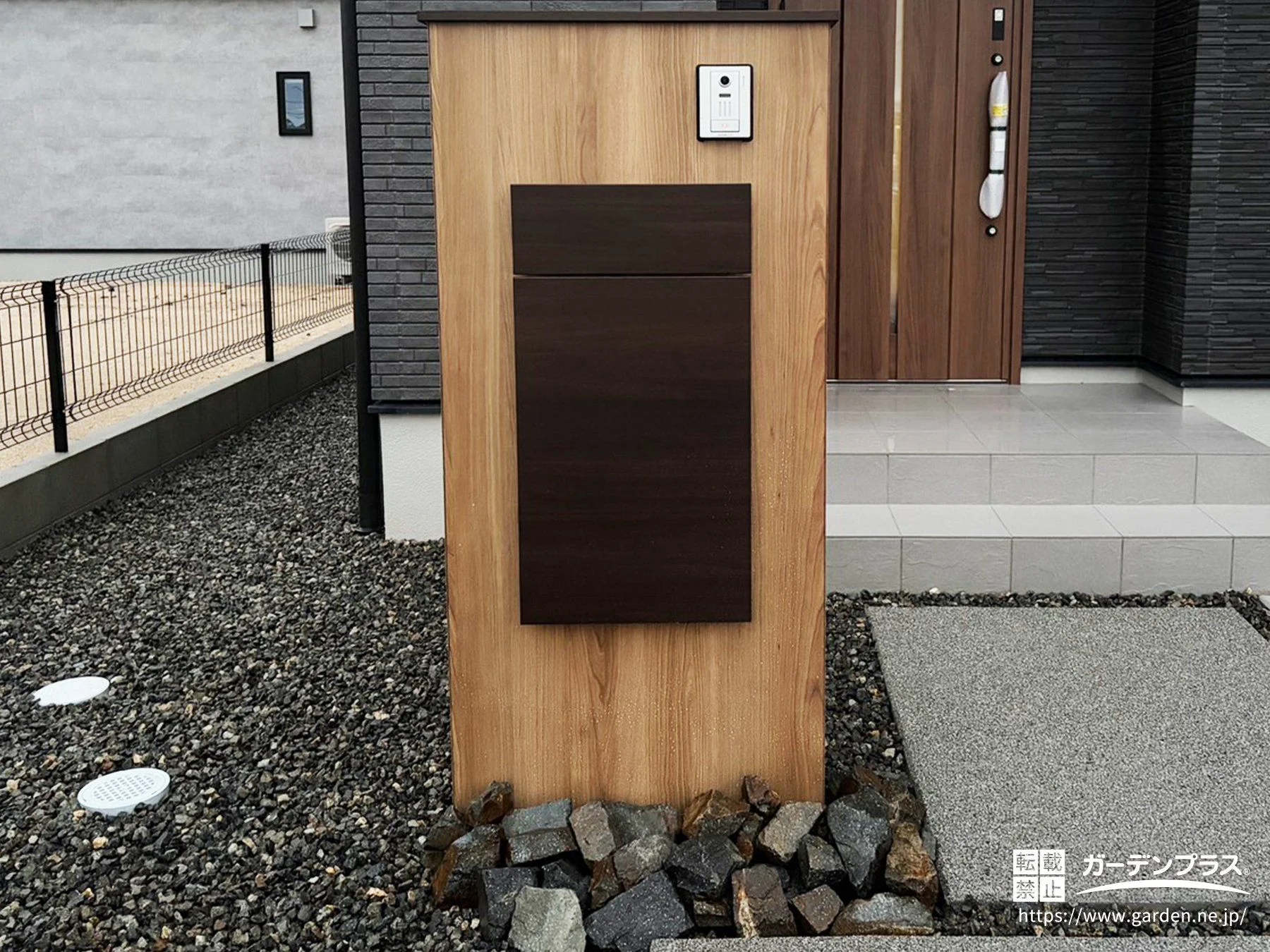 機能門柱・ポスト:LIXIL 機能門柱FK チェリーウッド + フレーム クリエダーク