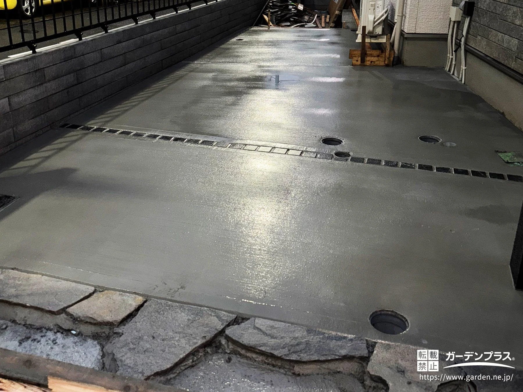 雨の日も気持ちよく使える、ピンコロ目地が映える上質なコンクリート駐車スペース