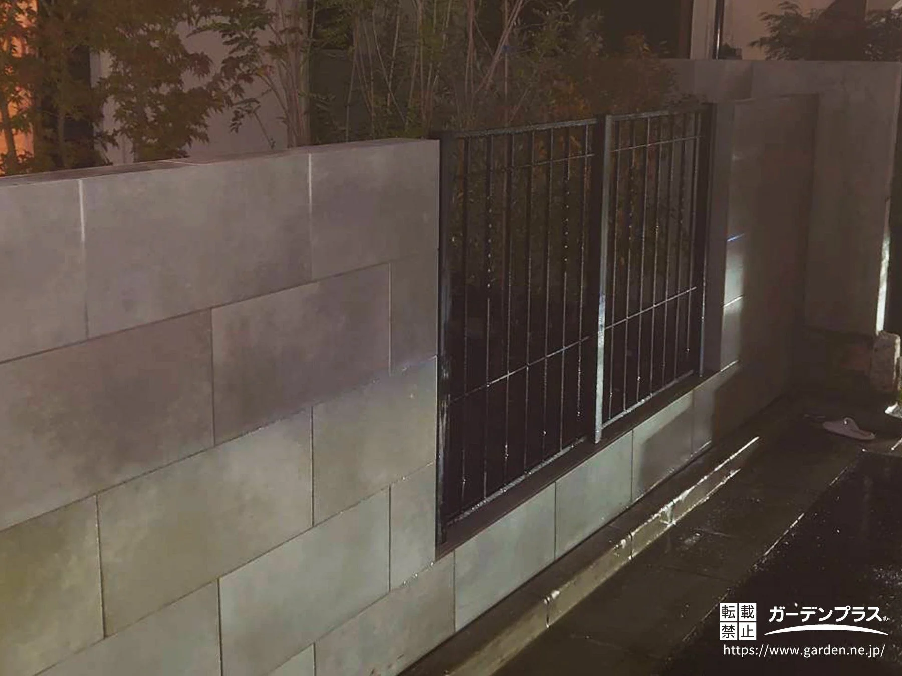 袖壁:ブロックベース + コンクリートブロック + タイル張り + 裏面塗装仕上げ
