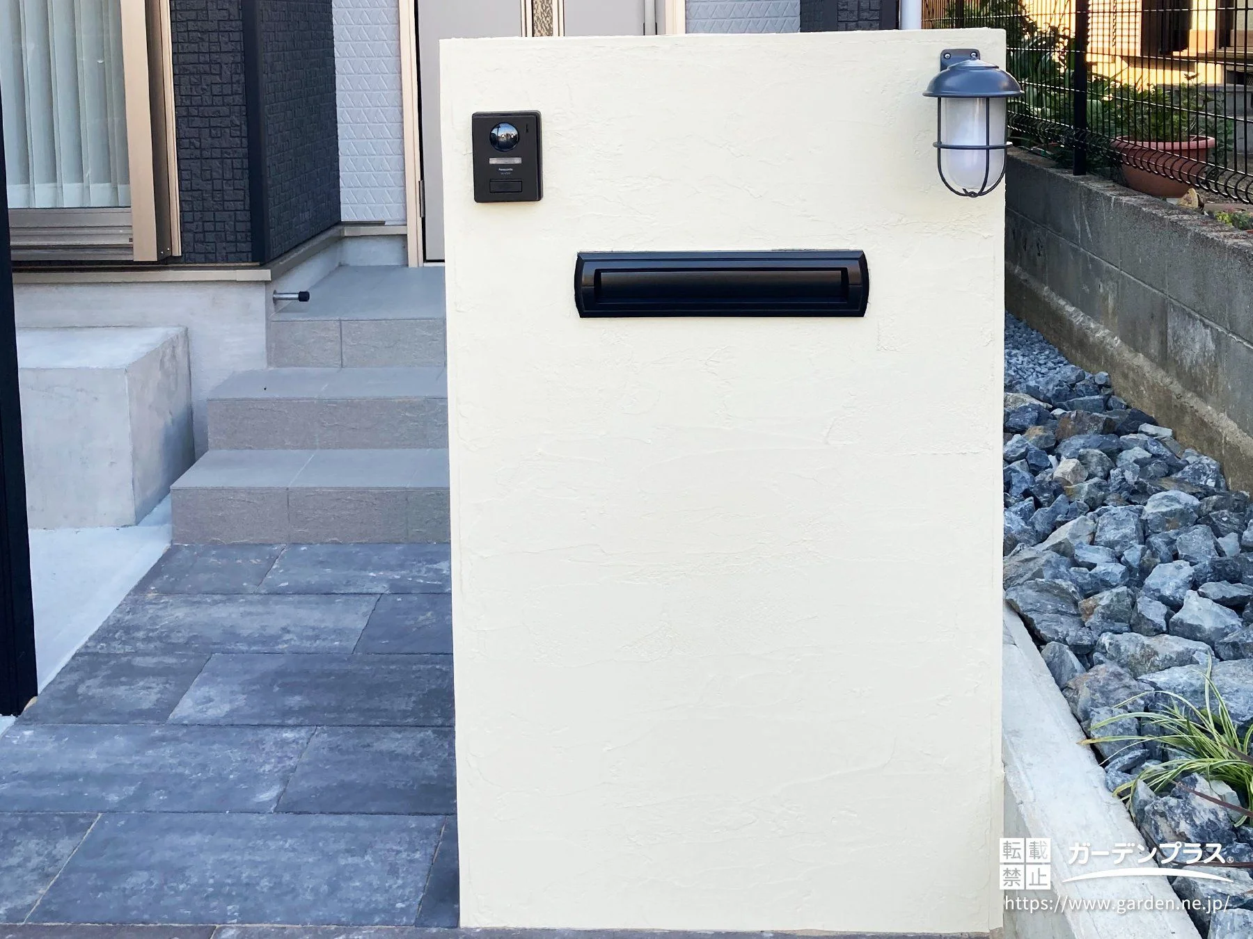 門柱:ブロックベース + コンクリートブロック + ジョリパット塗装仕上げ