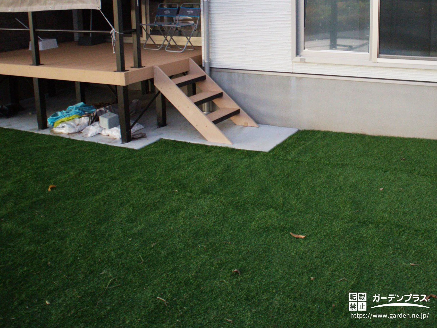 主庭:防草シート + 人工芝