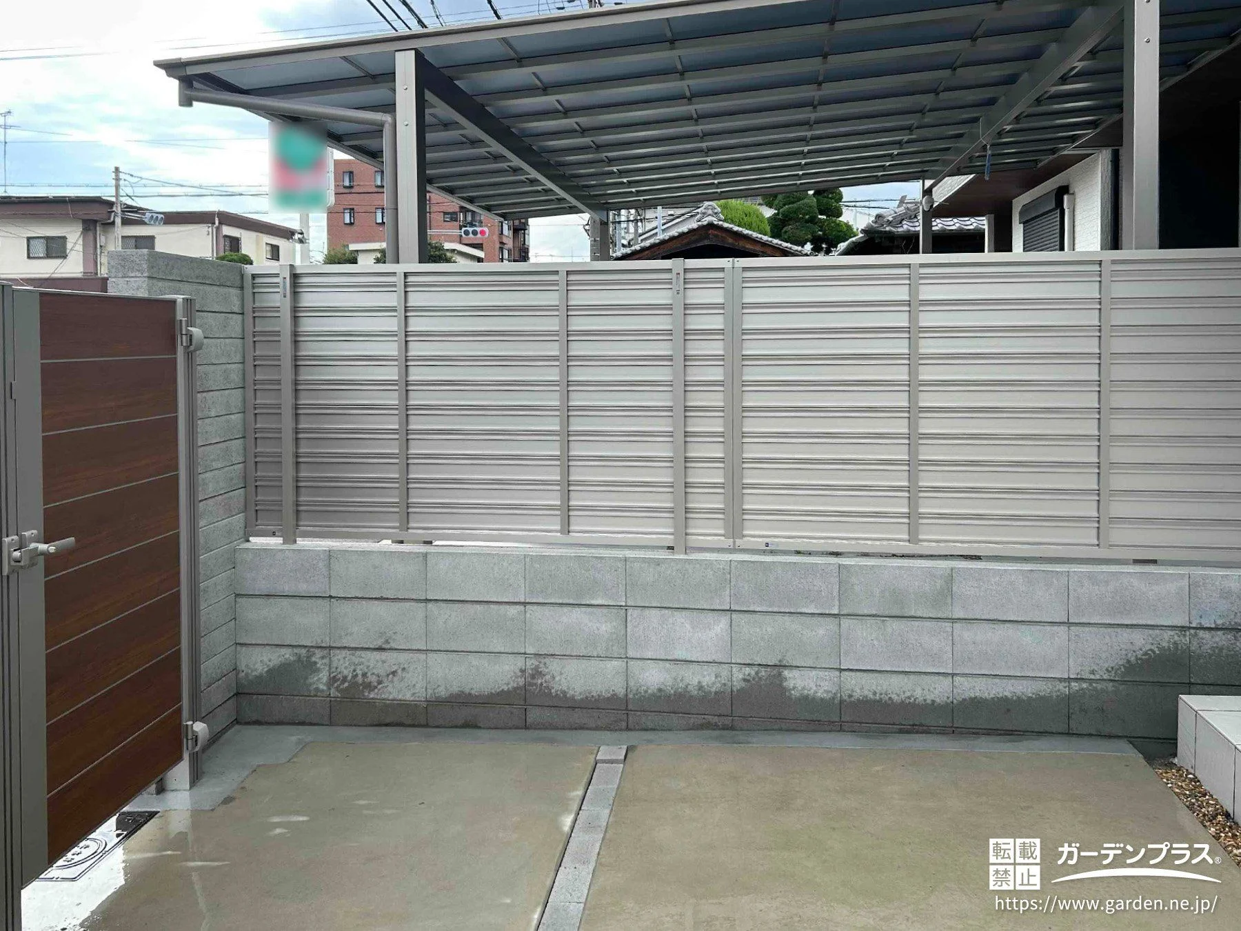 隣地境界に化粧ブロックを積み、上から目隠しフェンスを設置しました。お隣さんとお互いに視線が気にならなくなり、快適にお過ごしいただけます。