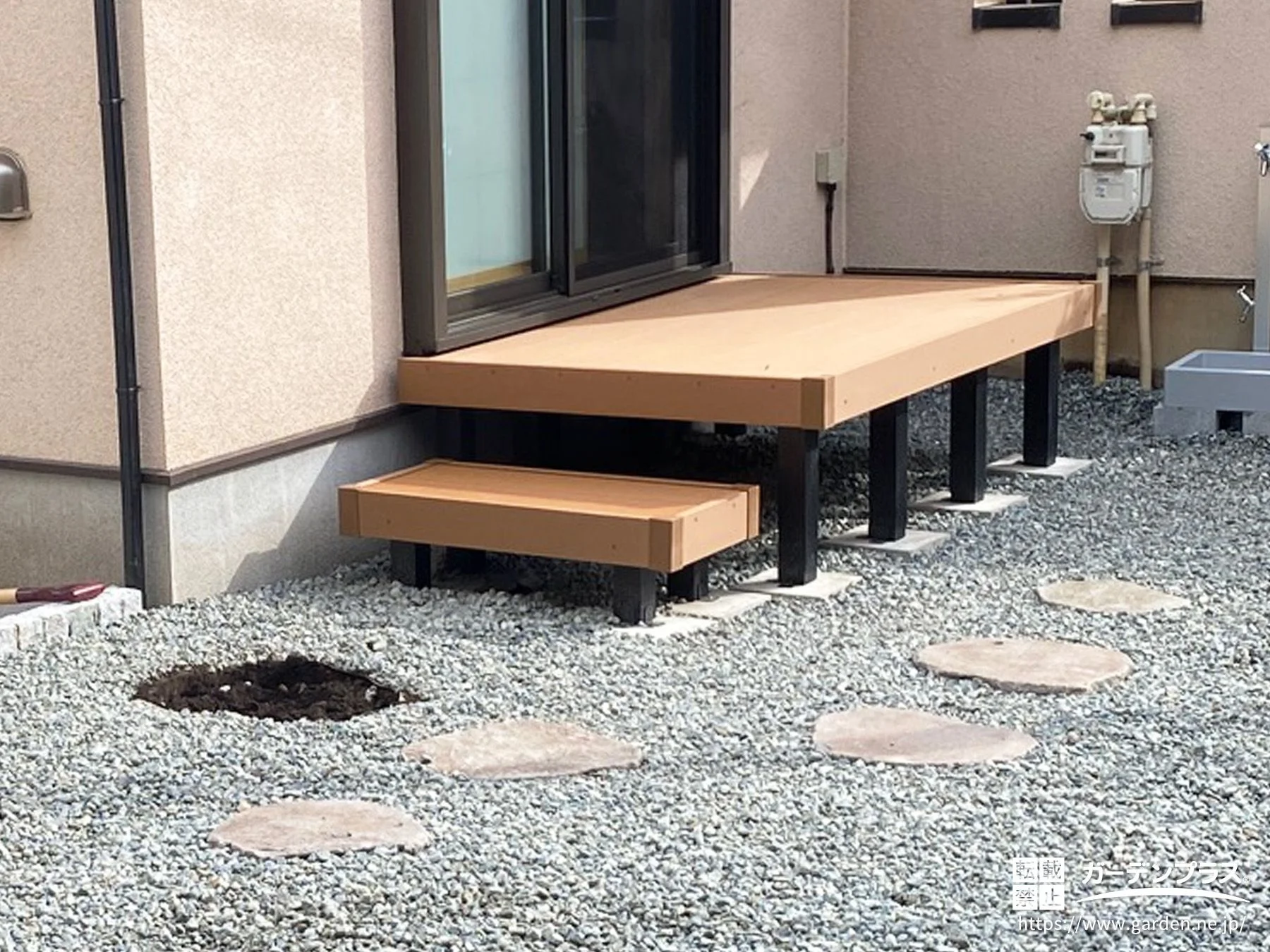 ステップ付きのウッドデッキ
