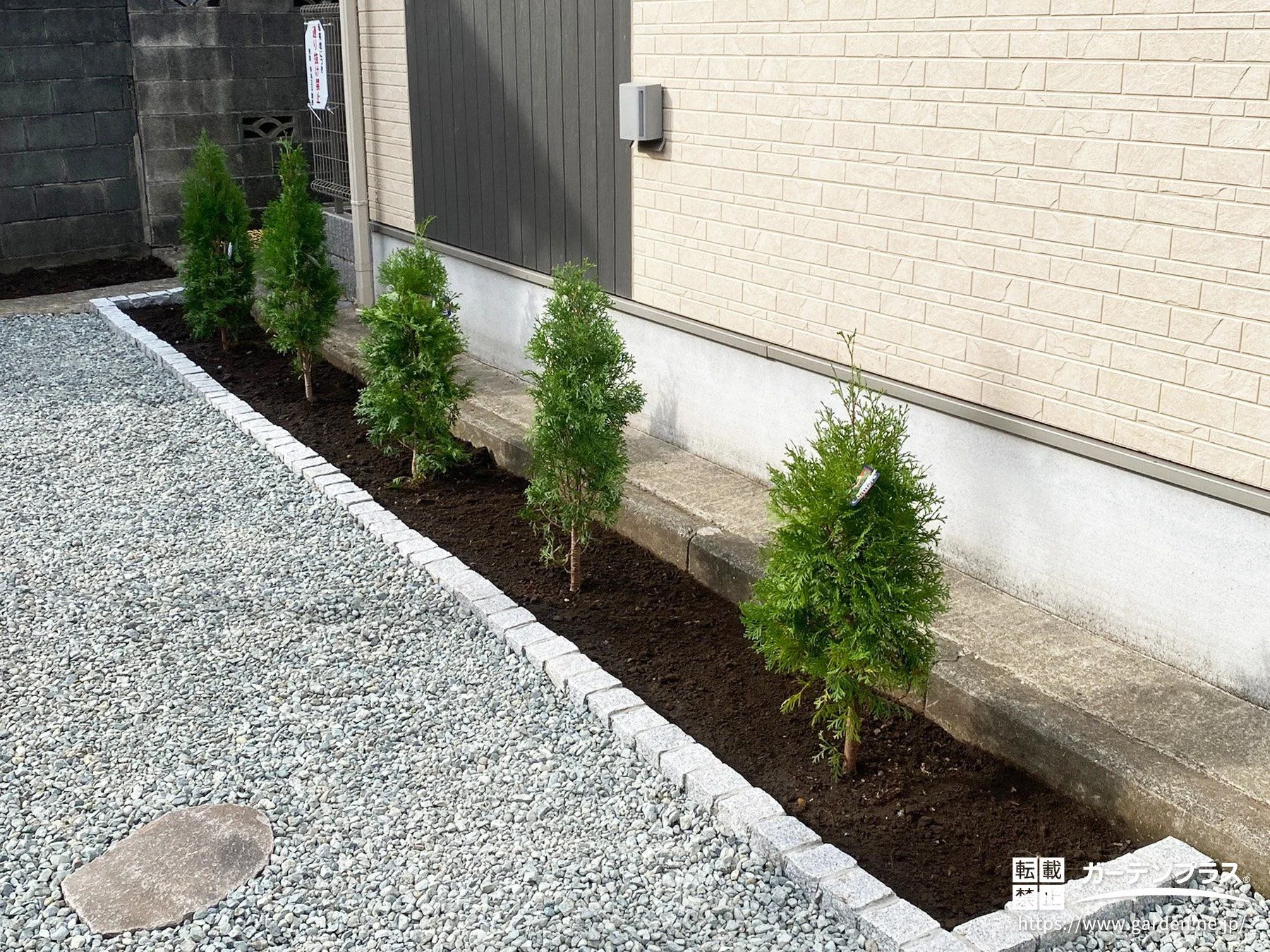 主庭:防草シート + 砂利