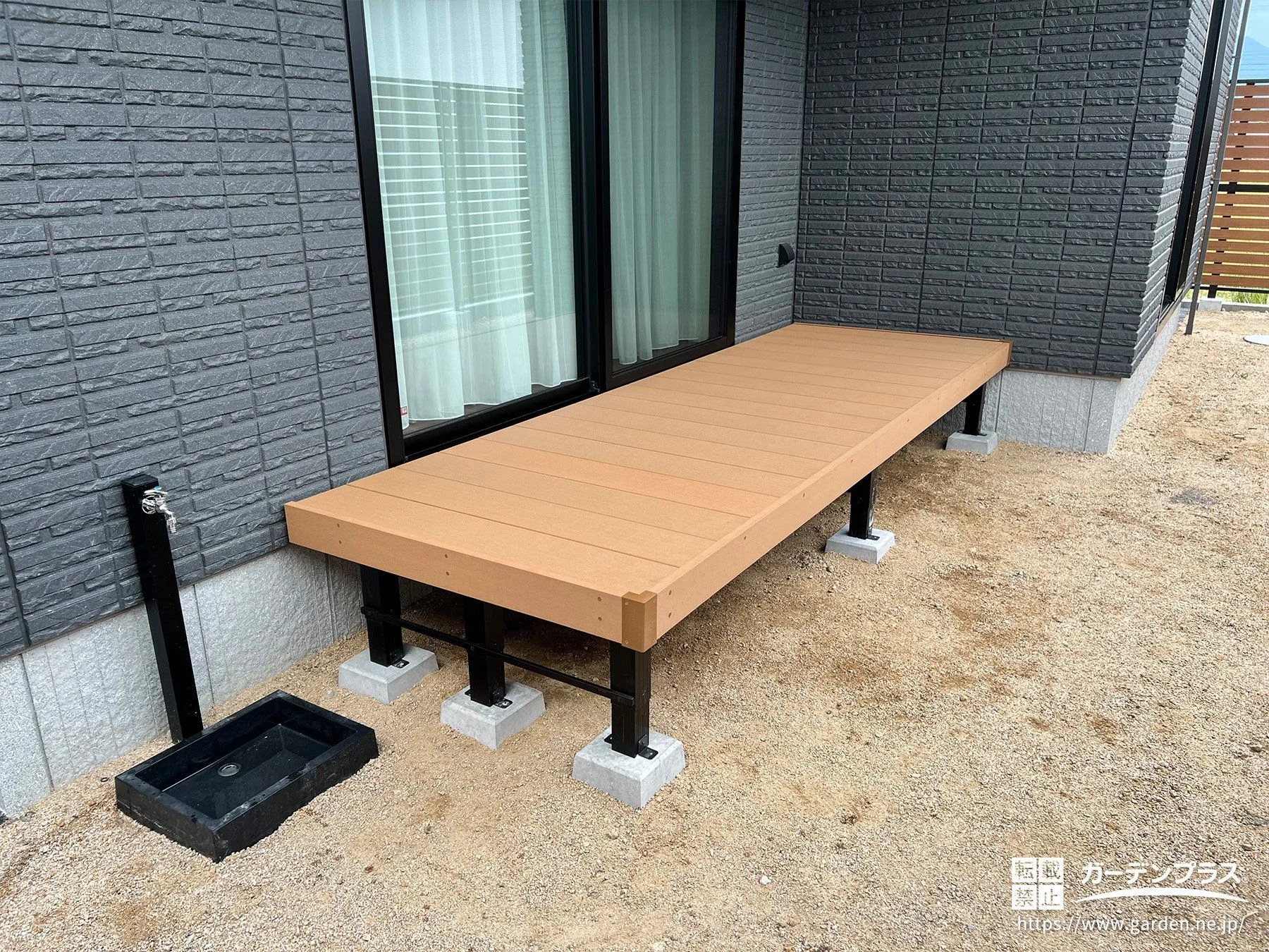 人工木製で腐食等の心配がないウッドデッキ