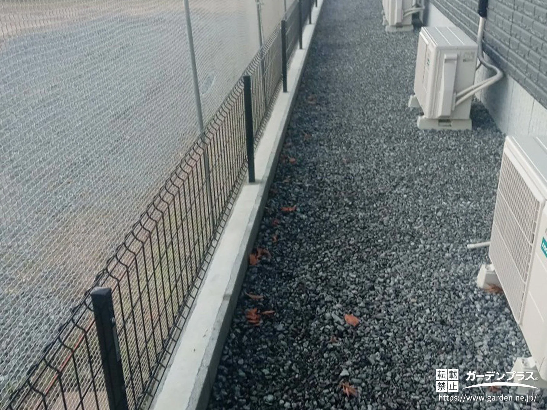 犬走リの敷地境界に境界フェンスを設置しました。圧迫感なく境界を明確化してくれ快適にお過ごしいただけます。