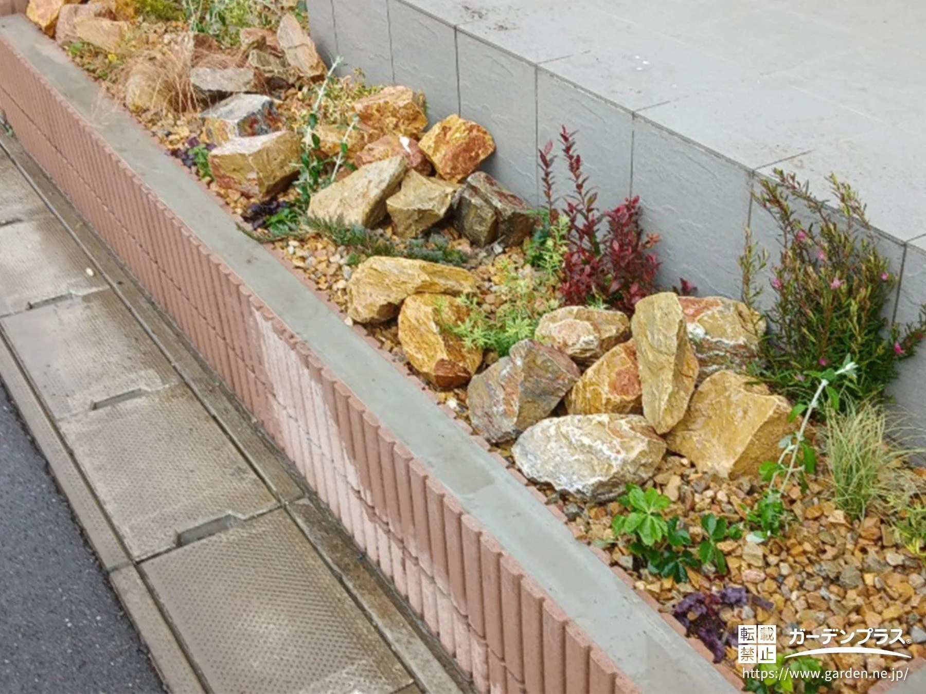 人工芝とロックガーデンで彩り豊かに仕上げたお庭リフォーム工事
